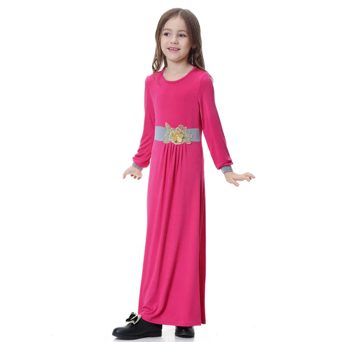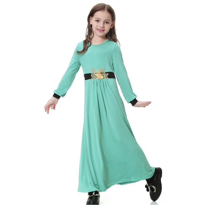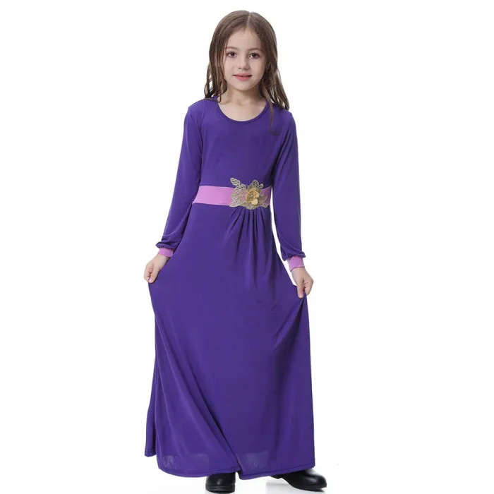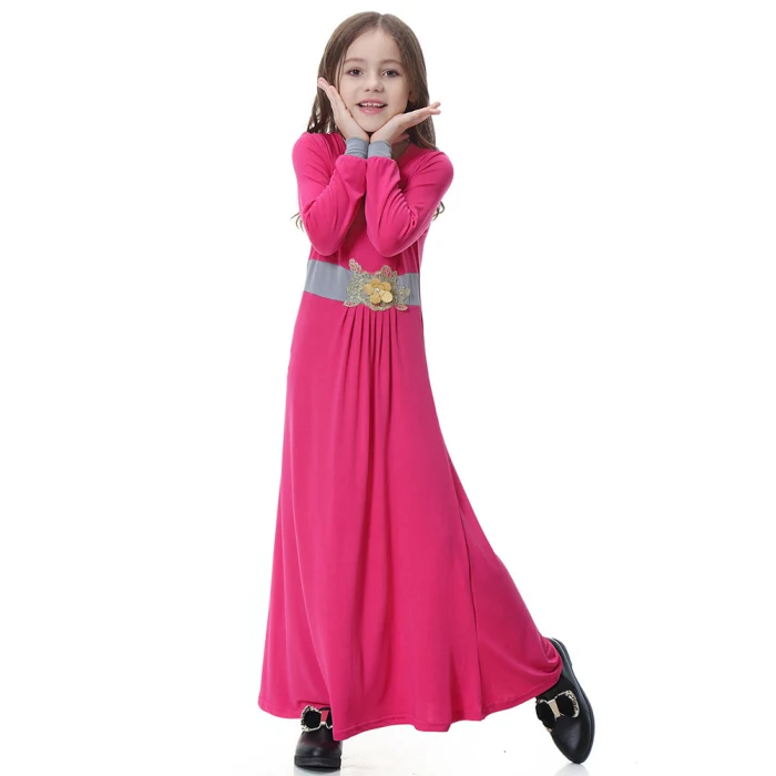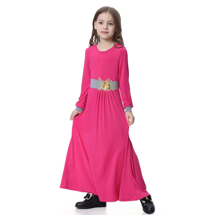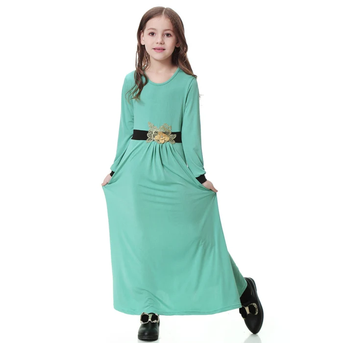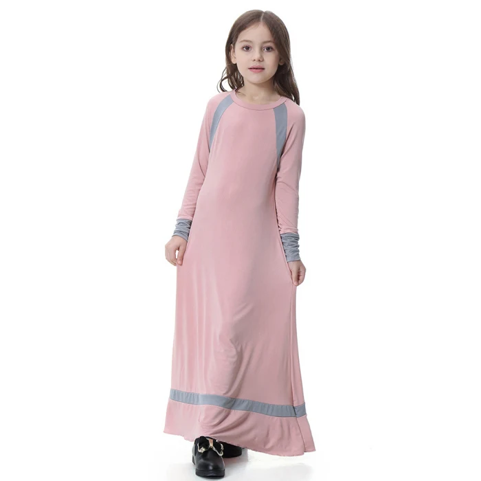 Новинка; цельнокроеное платье для сна для девочек; однотонное мусульманское платье для сна с длинными рукавами; IR-ing