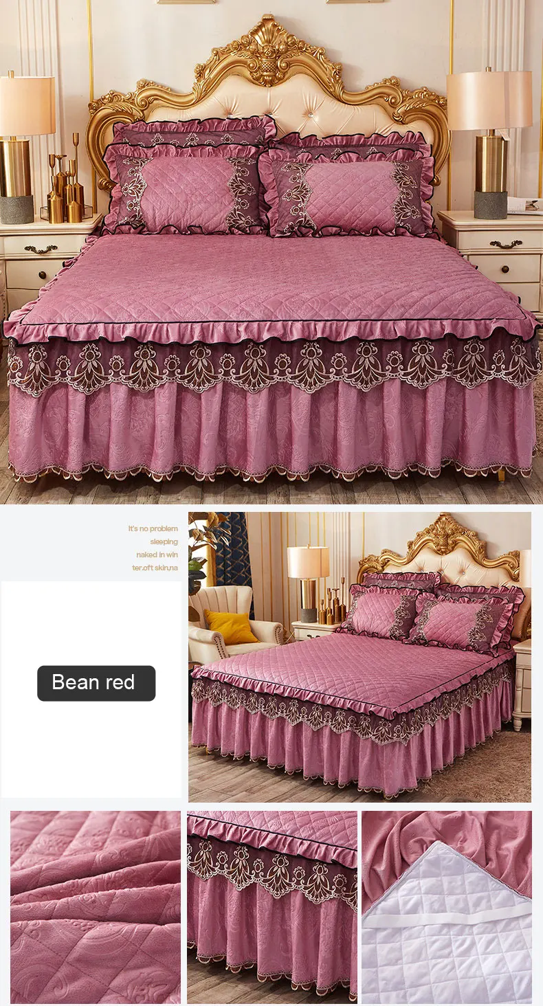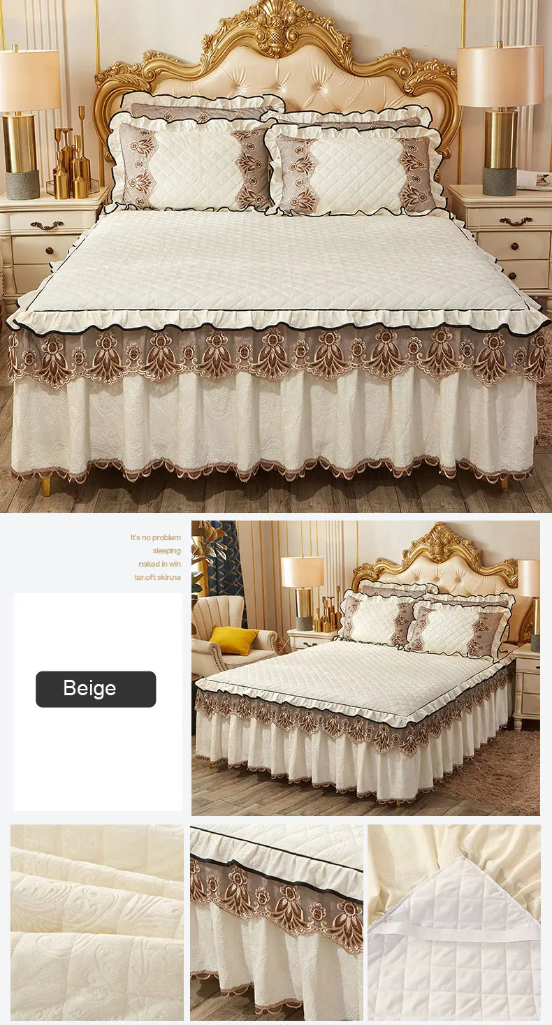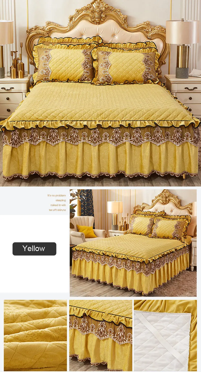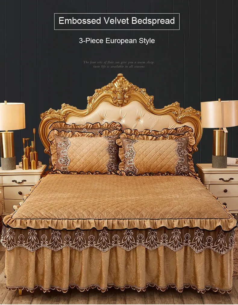 (1) Название продукта: 3 предмета с кружевами в европейском стиле Роскошные стеганое покрывало на кровать, одеяло, покрывало с подушечек.