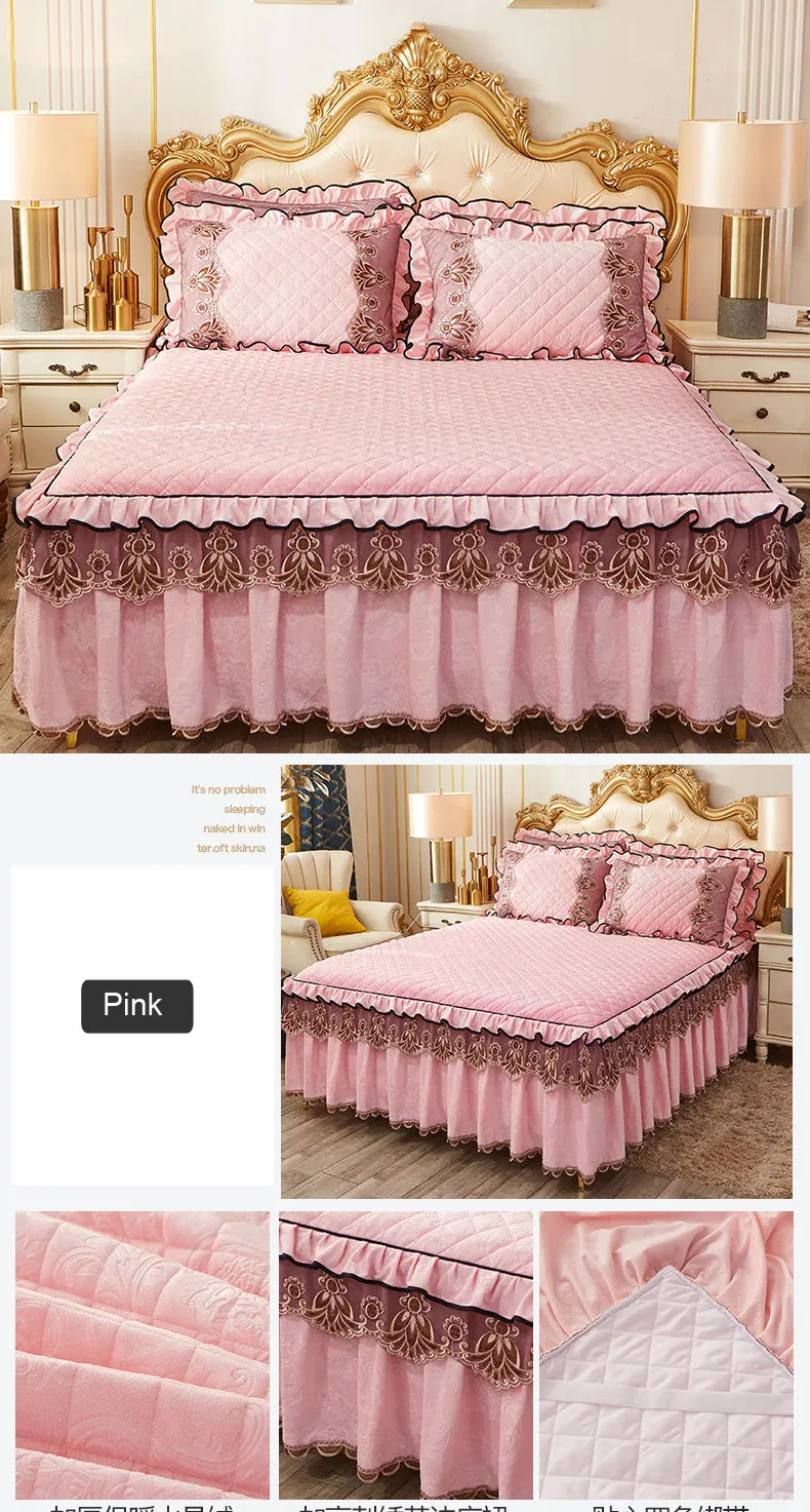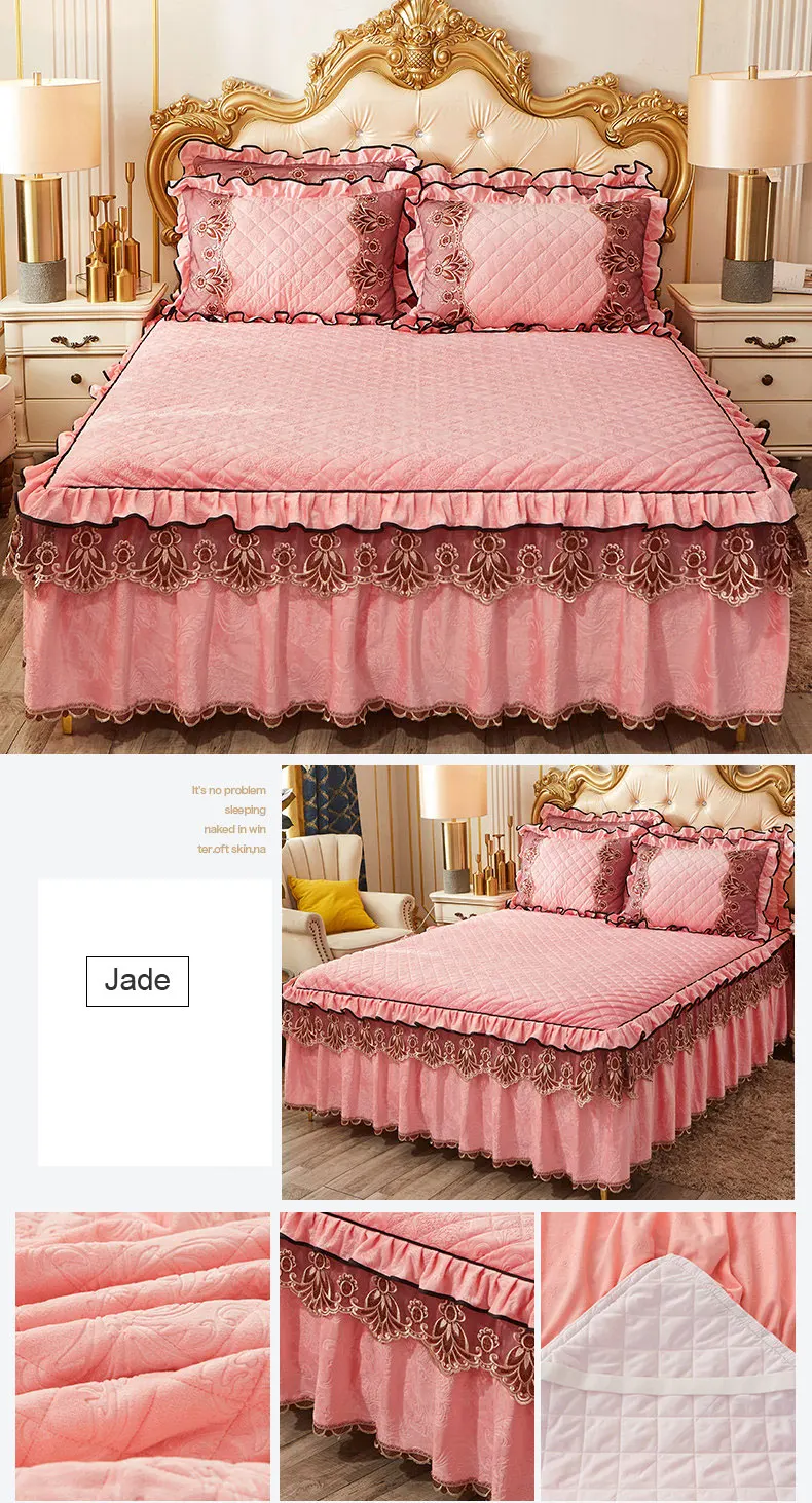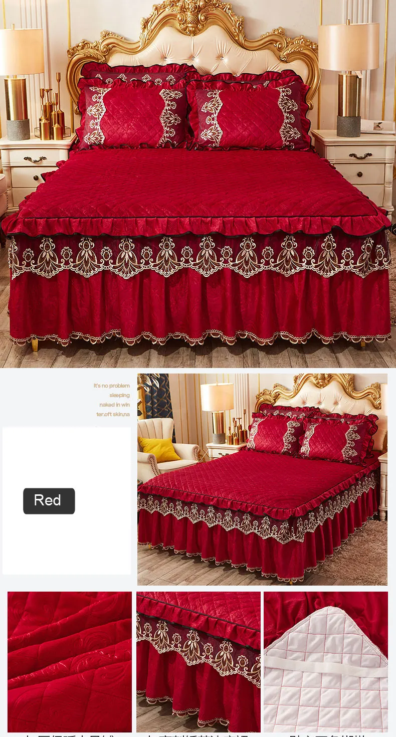 (1) Название продукта: 3 предмета с кружевами в европейском стиле Роскошные стеганое покрывало на кровать, одеяло, покрывало с подушечек.
