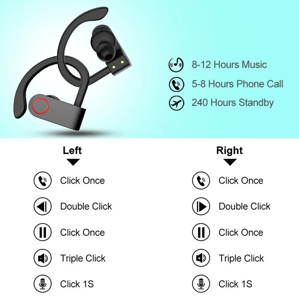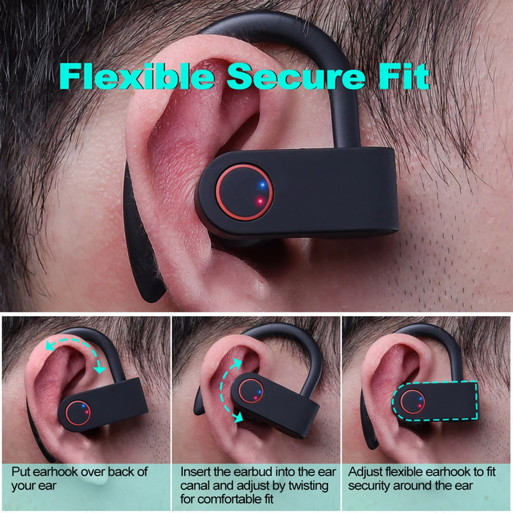 Эти спортивные наушники имеют регулируемые Крючки для наушников для стабильной посадки, беспроводные наушники останутся на месте даже при работе. Кроме того, он поставляется с дополнительными индивидуальными (маленькими и большими) ушными наконечниками, которые изготовлены из мягкого силиконового каучука, наслаждайтесь удобной посадкой, не повреждая даже в течение длительного времени ношения.