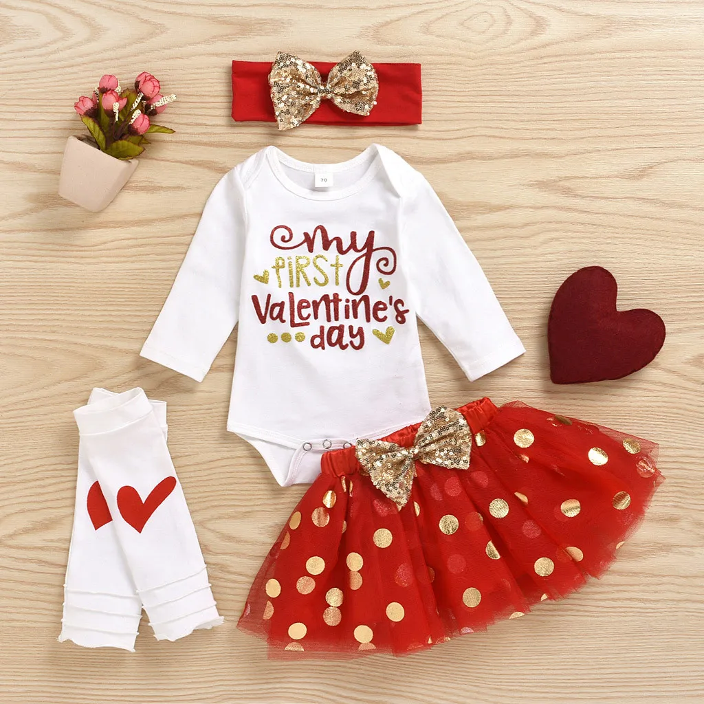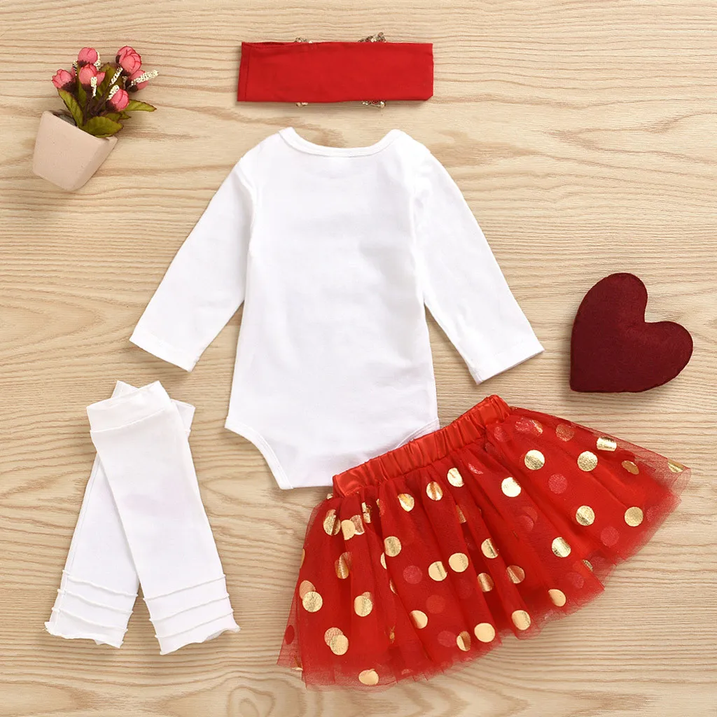 Комбинезон для новорожденных девочек на День Святого Валентина; Юбка-пачка; Повязка на голову; Гетры; Комплект