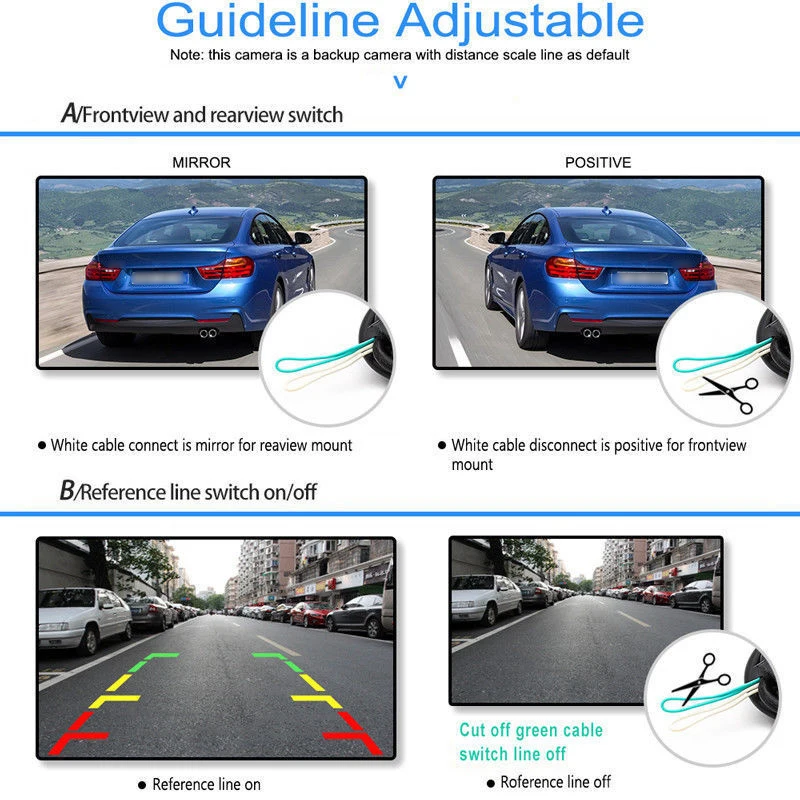 2. Если вам нужна резервная камера без линии шкала расстояния, пожалуйста, отрежьте зеленый провод.