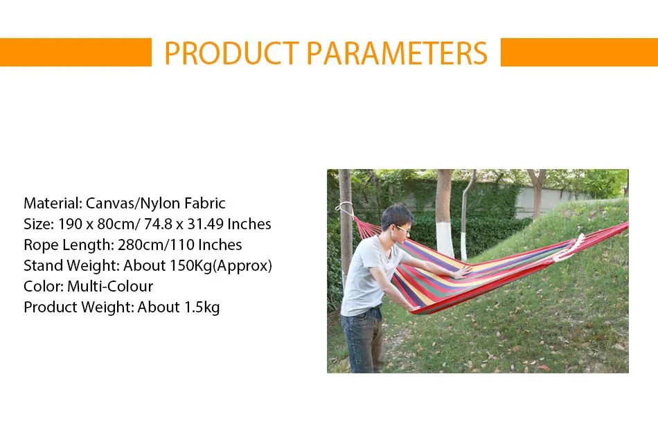 Особенности: Сильный гамак с подставкой весом 120 кг. Легко носить с собой и упаковывать в мешок одного цвета. Легкая фиксация, просто Зафиксируйте гамак с 2 связывающими струнами и привяжите струны к деревьям или полюсам. Каждая нить сплетена вместе со своим соседом, так что медведи с одной струной давления могут быстро передаваться другим. Веревка соединена специально в соответствии с физическими правилами, чтобы каждая веревка держалась на одном весе, а гамак достаточно прочный. Используется специальная очень тяжелая парусиновая ткань в качестве материала, износостойкая, приятная на вид и приятная на ощупь. Выглядит красиво с поворотной кромкой и без грубой кромки. Вызывает вашу теплую память о детском возрасте.