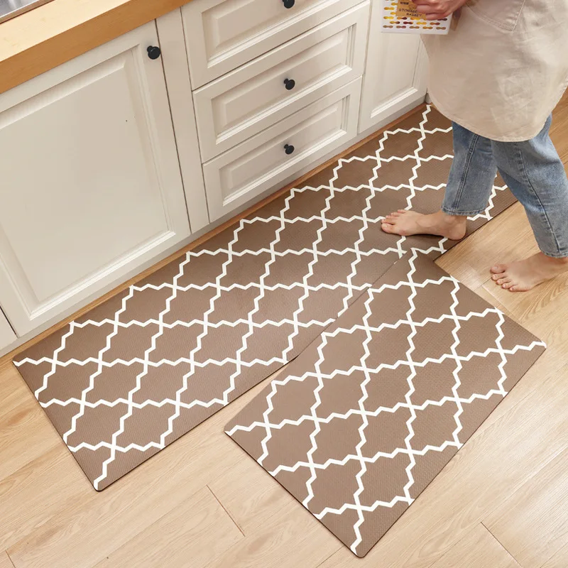 Спецификация Наименование товара: кухонный коврик Материал: ПВХ Размер: 45x75 см, 45x150 см Характеристики: противоскользящие Функция: коврик в прихожую, дверной коврик, коврик для ванной и коврики Цвет: серый, синий, коричневый, винно-красный Примечание: возможна погрешность в 1-3 см и небольшая разница в цвете в интернет-магазине