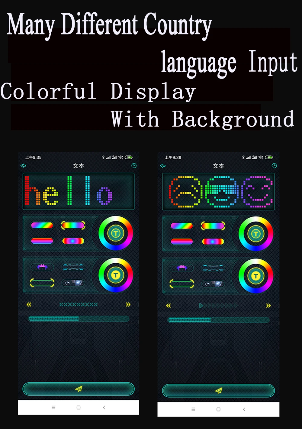 A. Тип зарядки: Название продукта: Полноцветная маска Размер изделия: 22*18*5 см Время зарядки: 5 часов Зарядка типа c: 5 В/1 А Время использования: 12 часов Модель аккумулятора: 103450 полимер Язык поддержки: 10 видов Емкость аккумулятора: 2000 мАч Пиксели: 46*58 (нерегулярные) Ламповые бусины: 2121RGB Ламповые бусины Количество лампочек: 2074 шт. Размер цветной коробки: 257*215*93 мм Материал: АБС-пластик + ПВХ объектив + силикон Вес нетто продукта: 303 г Вес брутто продукта: 802 г Рисунок продукта: 45 динамических фотографий 70 статических изображений B. Тип батареи: Название продукта: Полноцветная маска Размер изделия: 22*18*5 см Время использования: 10 часов Источник питания: 3 батарейки типа АА Язык поддержки: 10 видов Емкость аккумулятора: 2000 мАч Пиксели: 46*58 (нерегулярные) Ламповые бусины: 2121RGB Ламповые бусины Количество лампочек: 2074 шт. Размер цветной коробки: 257*215*93 мм Материал: АБС-пластик + ПВХ объектив + силикон Вес нетто продукта: 277 г Вес брутто продукта: 776 Рисунок продукта: 45 динамических фотографий 70 статических изображений Упаковочный лист В комплект входит: 1 * маска для лица
