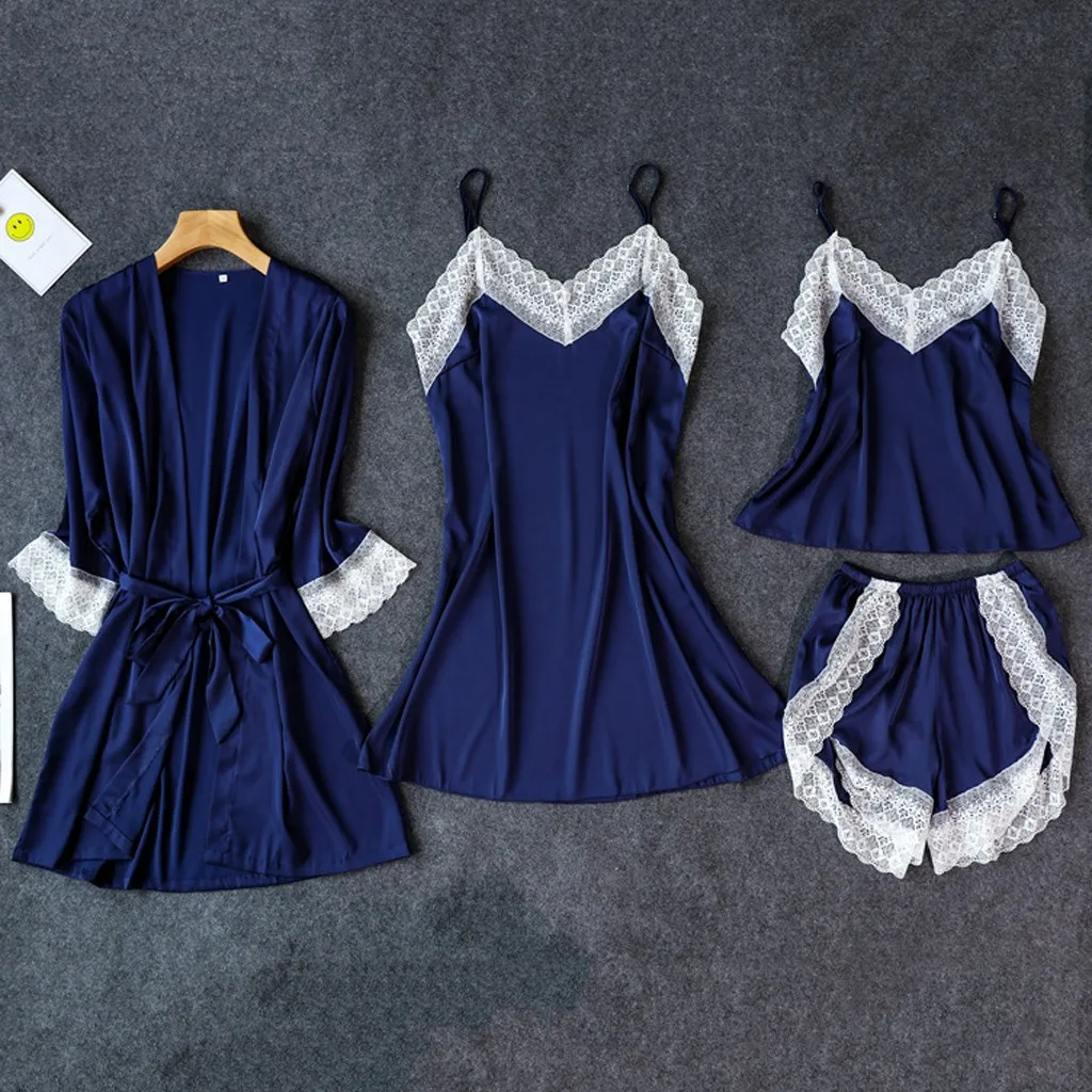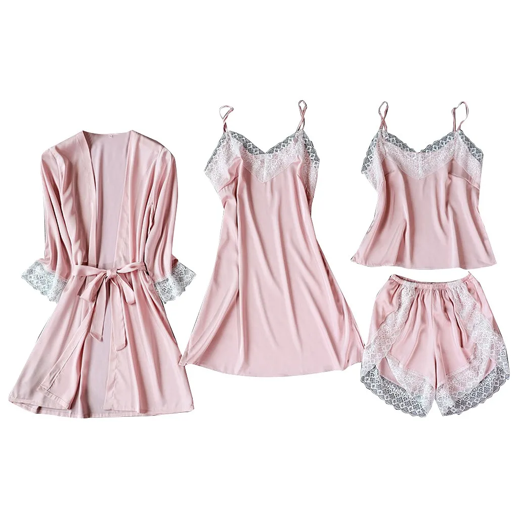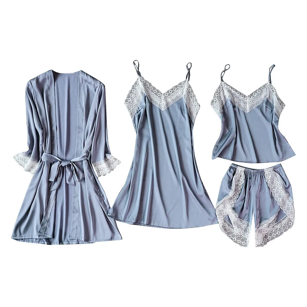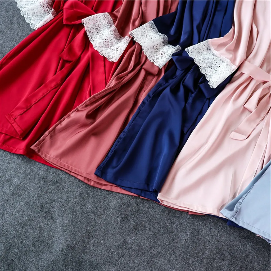 Sagace Nightdress Women Satin Silk Pajamas Cardigan Bathrobe Ladies Robes Underwear Nightdress suspenders pants top Sleepwear