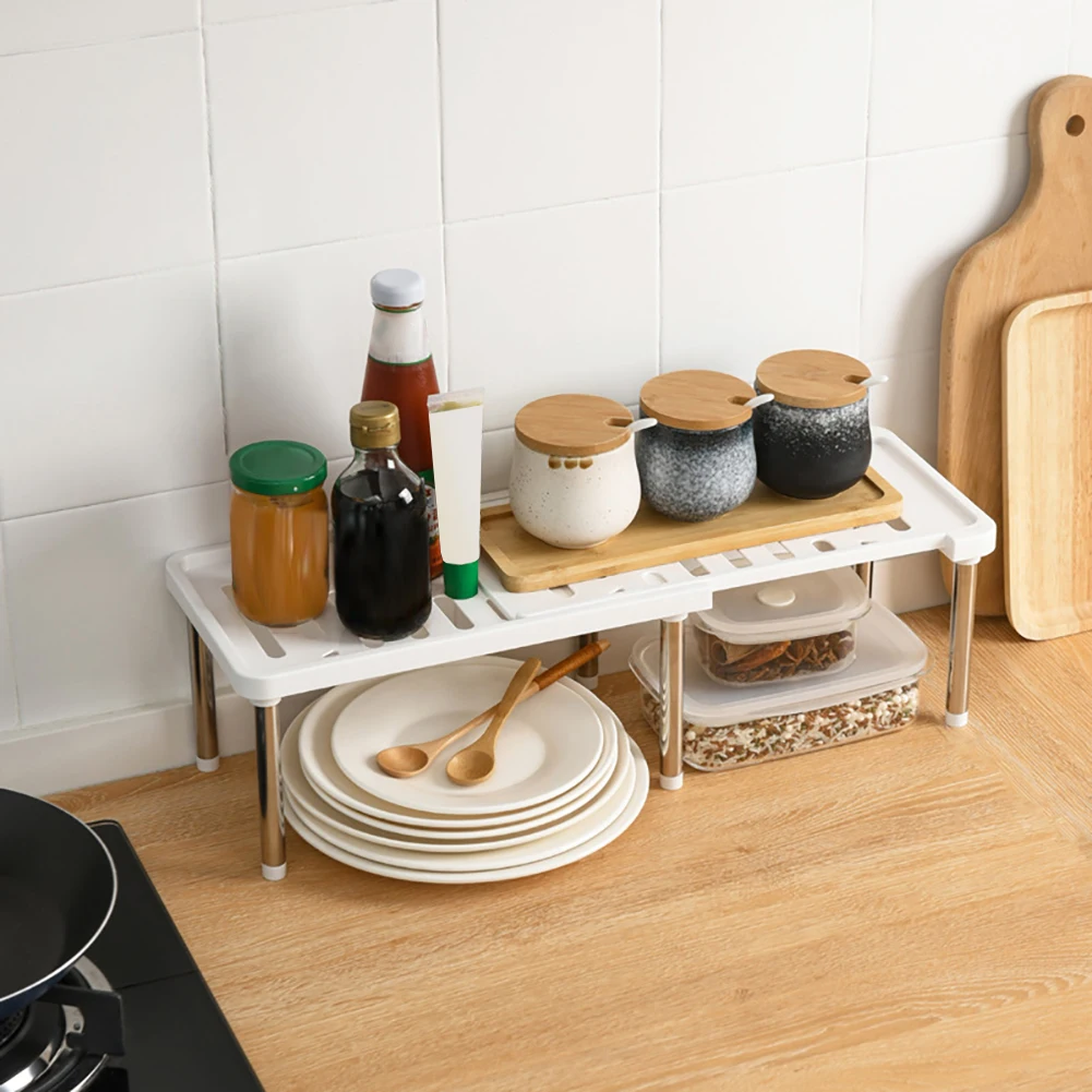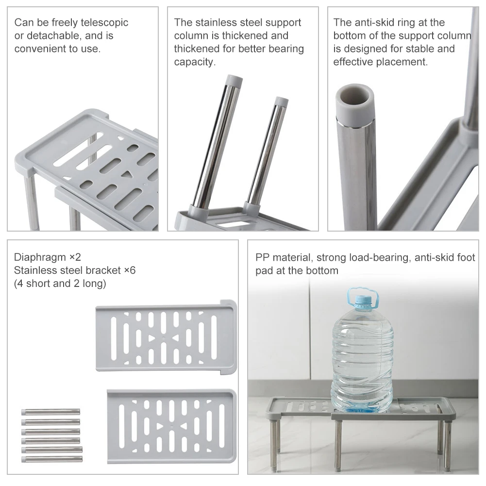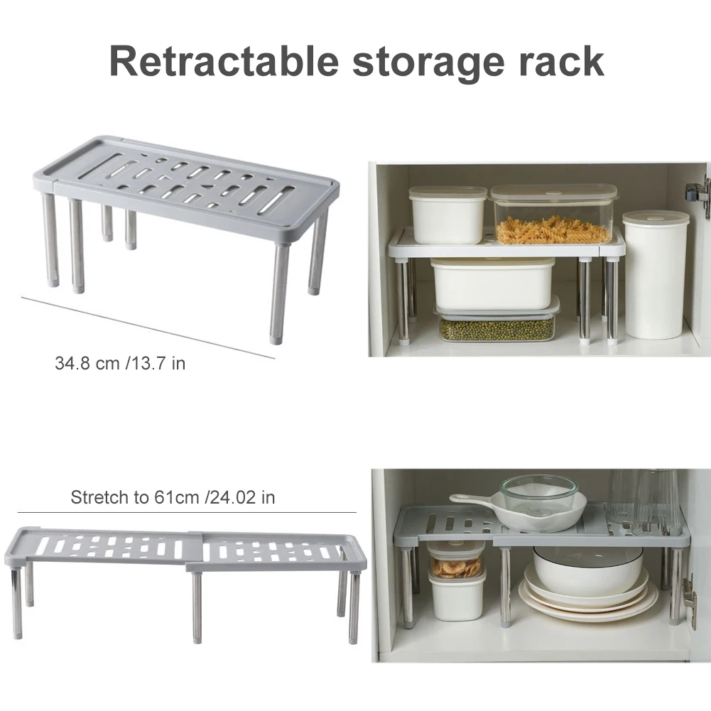 *4. Retractable kitchen and bathroom layered storage rack, which can be used for cupboard, kitchen, washing table, classified storage, neat and not easy to mess