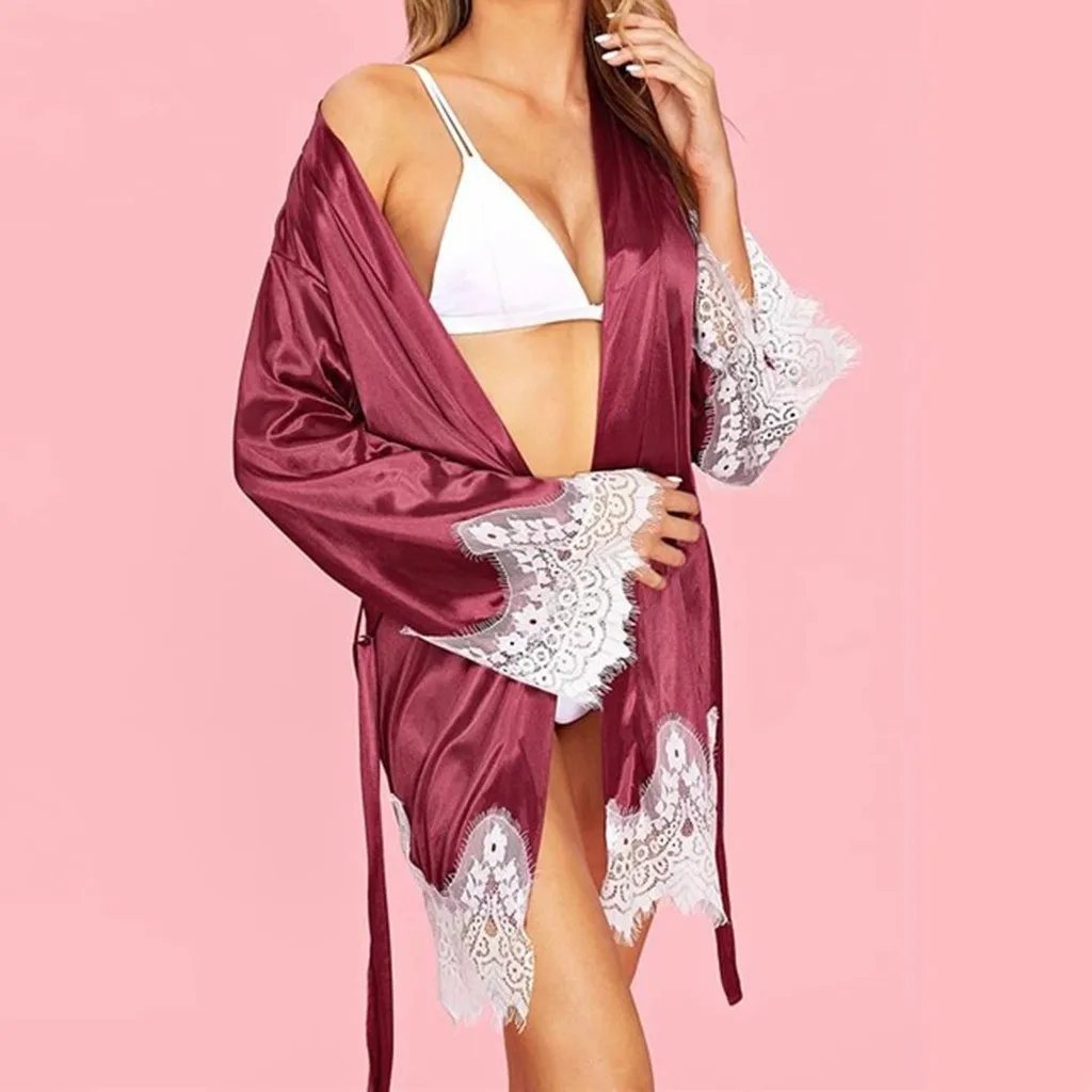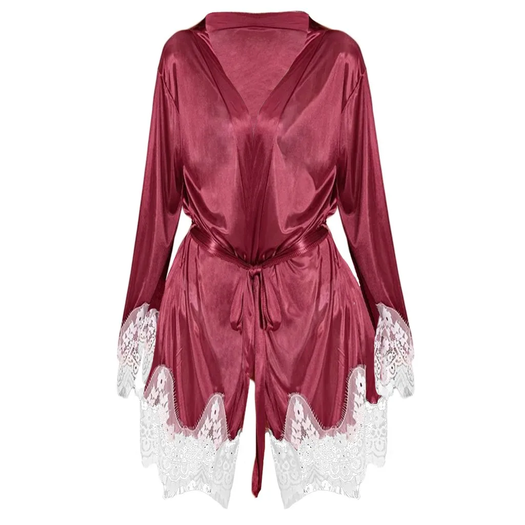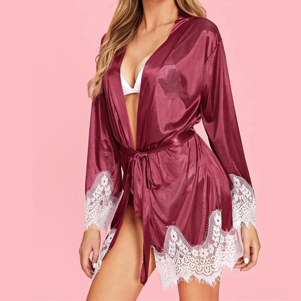 Сексуальные пижамы для женщин, ночные рубашки, атласные кружевные пижамы, сорочка de nuit pour femmes с длинным рукавом, Дамская Мини Ночная рубашка