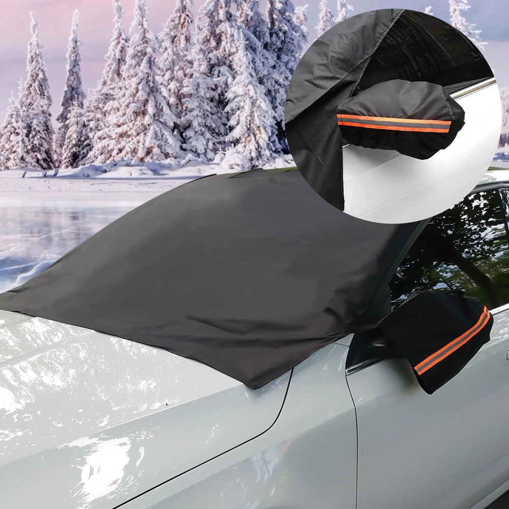 * 4,6 мощных магнитов сверху, чтобы удерживать снег на внешнем ветровом стекле даже в ветрозащитные дни, а два ветрозащитных ремня с каждой стороны помогают плотно прикрепить этот чехол.