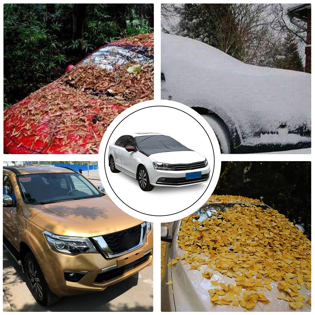* 2. Идеально подходит для всех сезонов. Боковая часть с серебряным покрытием защищает автомобили от солнечного света, вредного УФ-излучения, дождя и т. д., а черная сторона блокирует автомобиль от опущенных листьев, падения птиц, кислотных дождей, снега, град и т. д.