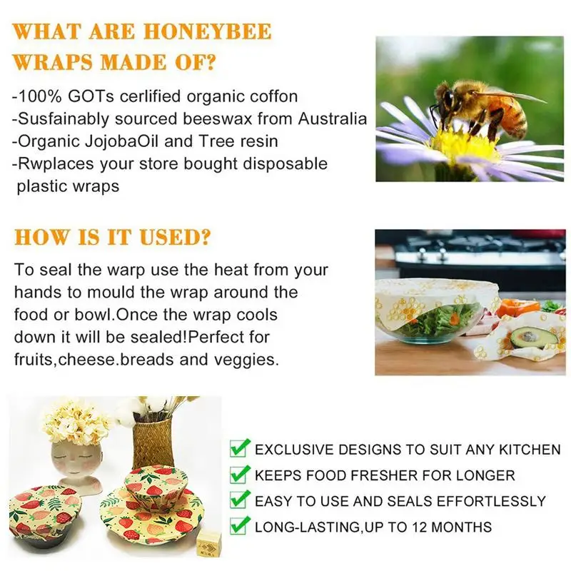 -Beeswax wrap изготовлен из сертифицированной GOTS хлопковой ткани, которая была вручную погружена в органический пчелиный воск, масло жожоба и дерево смолы-что означает, что ваша обертка имеет естественные свойства. Это супер завернуть!