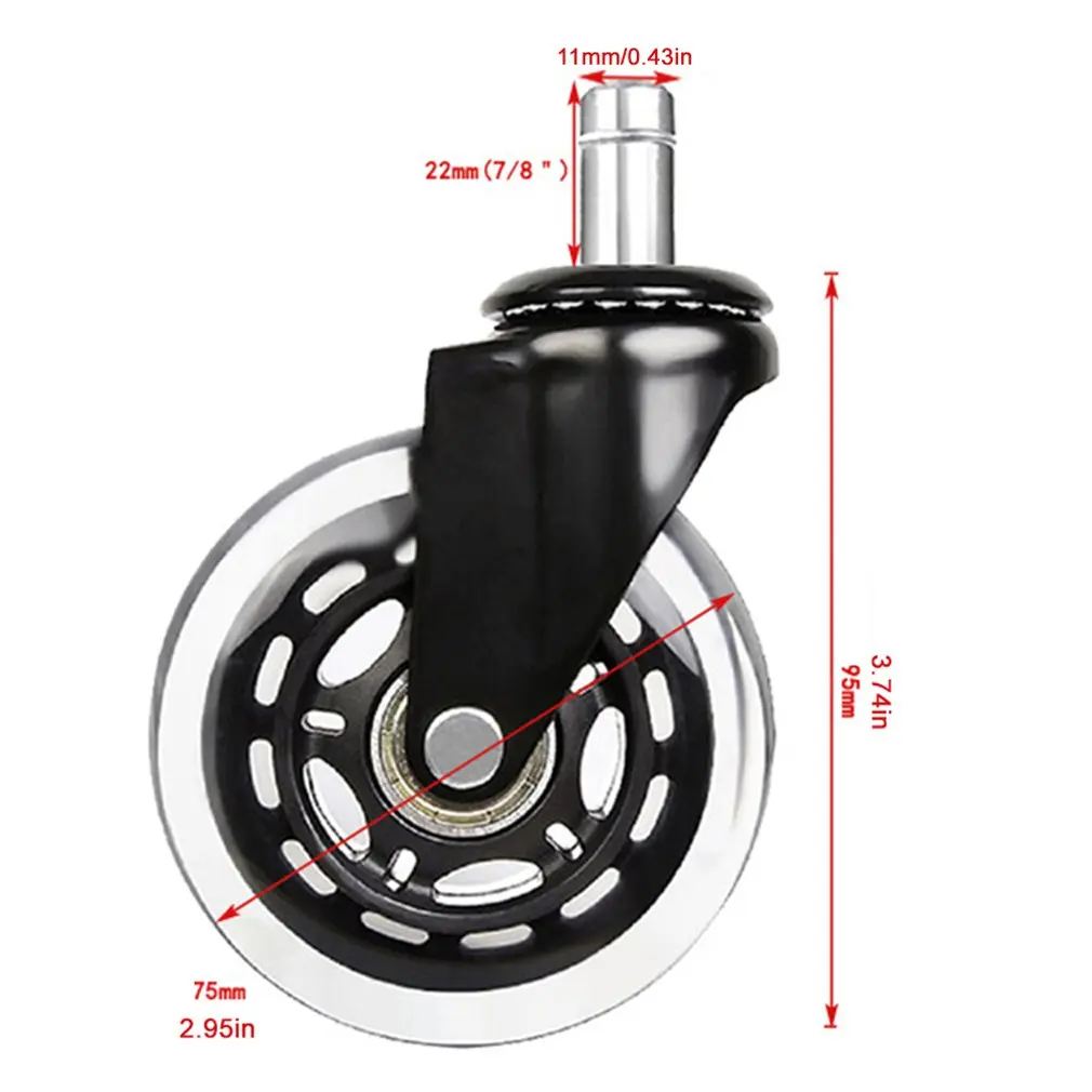 2,5 Inch/3 дюймов Универсальный ПУ колесо кольцо заклинателя черный сильный несущей прозрачные колеса офисное кресло бесшумное колесо