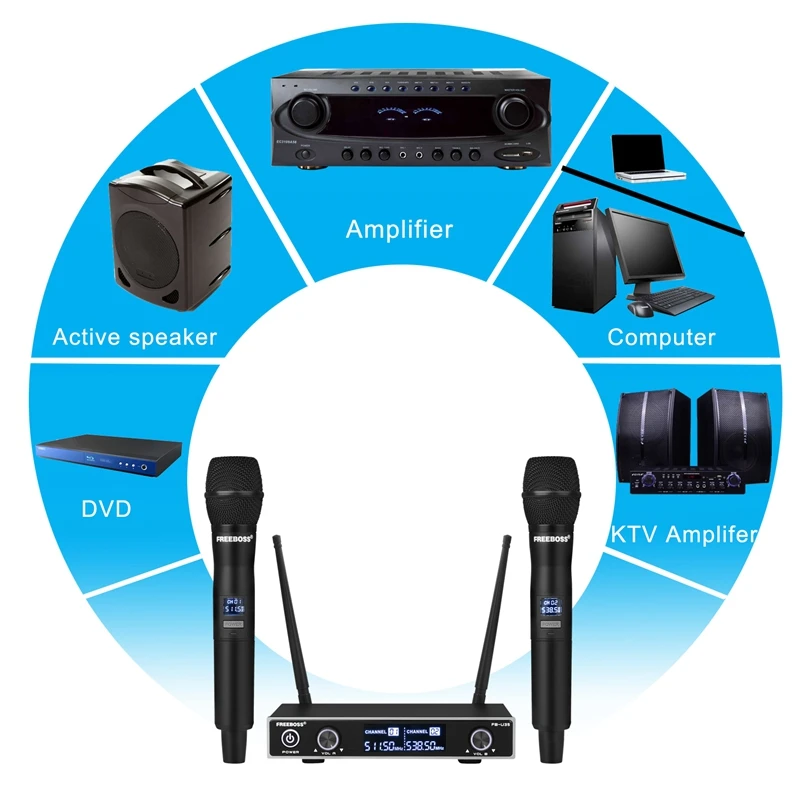 Freeboss FB-U35 двойная цифровая UHF профессиональная беспроводная микрофонная система с 2 металлическими ручками