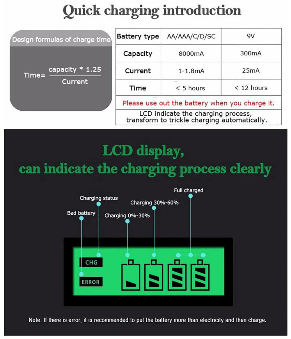 Аккумуляторная смарт-дисплей ЖК-экран зарядное устройство для Ni-MH NI-CD AA/AAA/SC/C/D/9V размер батареи Быстрая зарядка многоразового использования