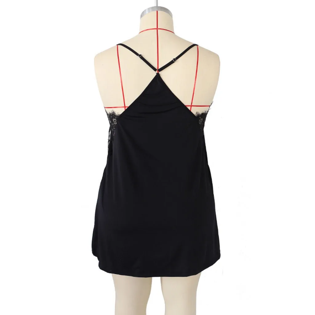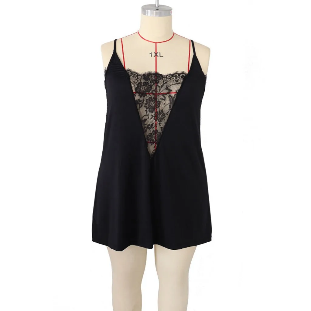 Women Plus Size Lace V-Neck Lingerie Set Underwear Backless Nightdress 3XL-5XL