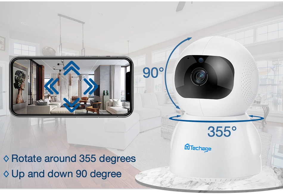 Плавная сковорода на 355 градусов позволяет наслаждаться потрясающим видом на всю комнату. Управляйте движениями камеры. Наведитесь на свой телефон, чтобы увидеть все, что вы хотите увидеть.