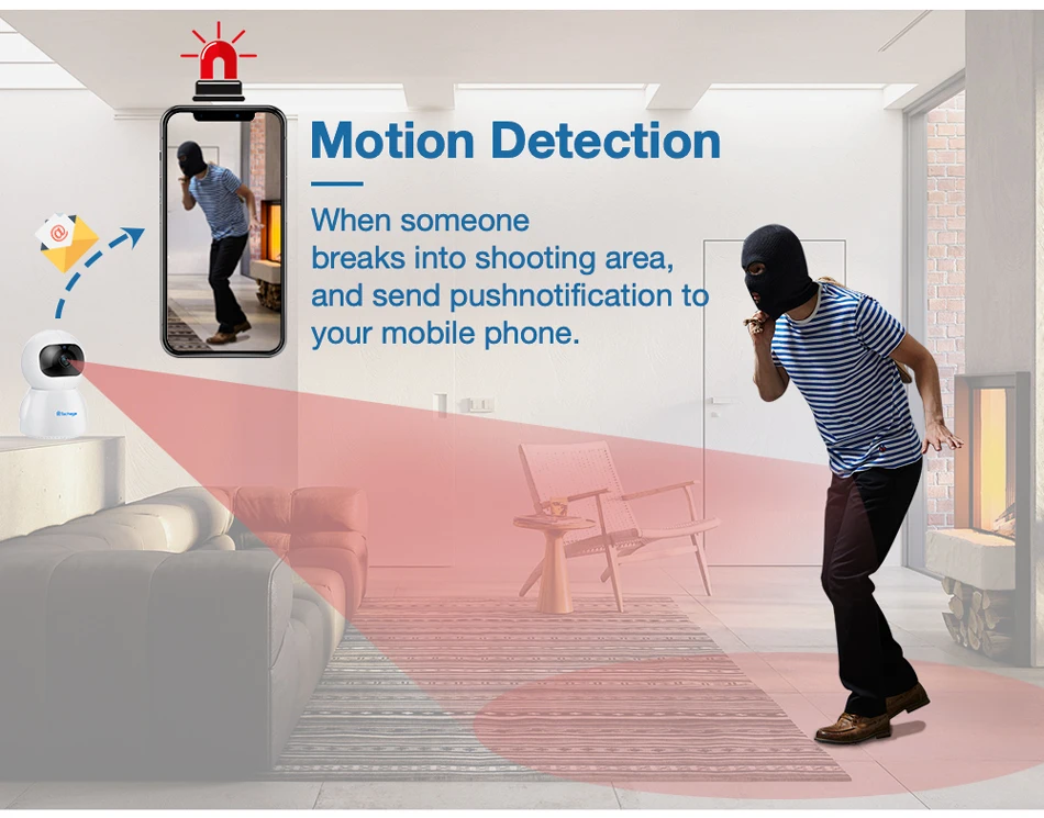Умное Обнаружение движения помогает вам следить за каждым движением, происходящим в вашем доме и офисе. И вы получите мгновенную тревожную электронную почту с изображениями, снятыми при вторжении в дом или офис.