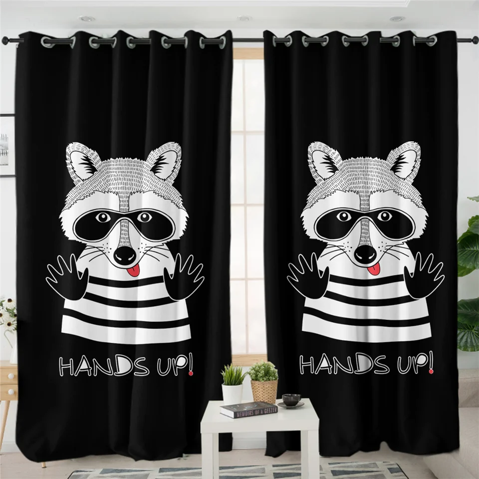 Item Name:CurtainPacking List:1*CurtainFabric:PolyesterSize:W100xH130cm,W100xH200cm,W100xH270cm,W150xH270cm,W200xH250cmPackage:1 Pc/PVC BagFeature:Doodle portrait of raccoon in black thief mask, cute design for kids.BeddingOutlet Reminder:1) The price is for ONE piece.2) Accpet customization, for any other sizes, please feel free to contact our customer service.3) Due to the light and screen difference, the item's color may be slightly different from the pictures.4) Size maybe 1-5 cm error due to hand measure.