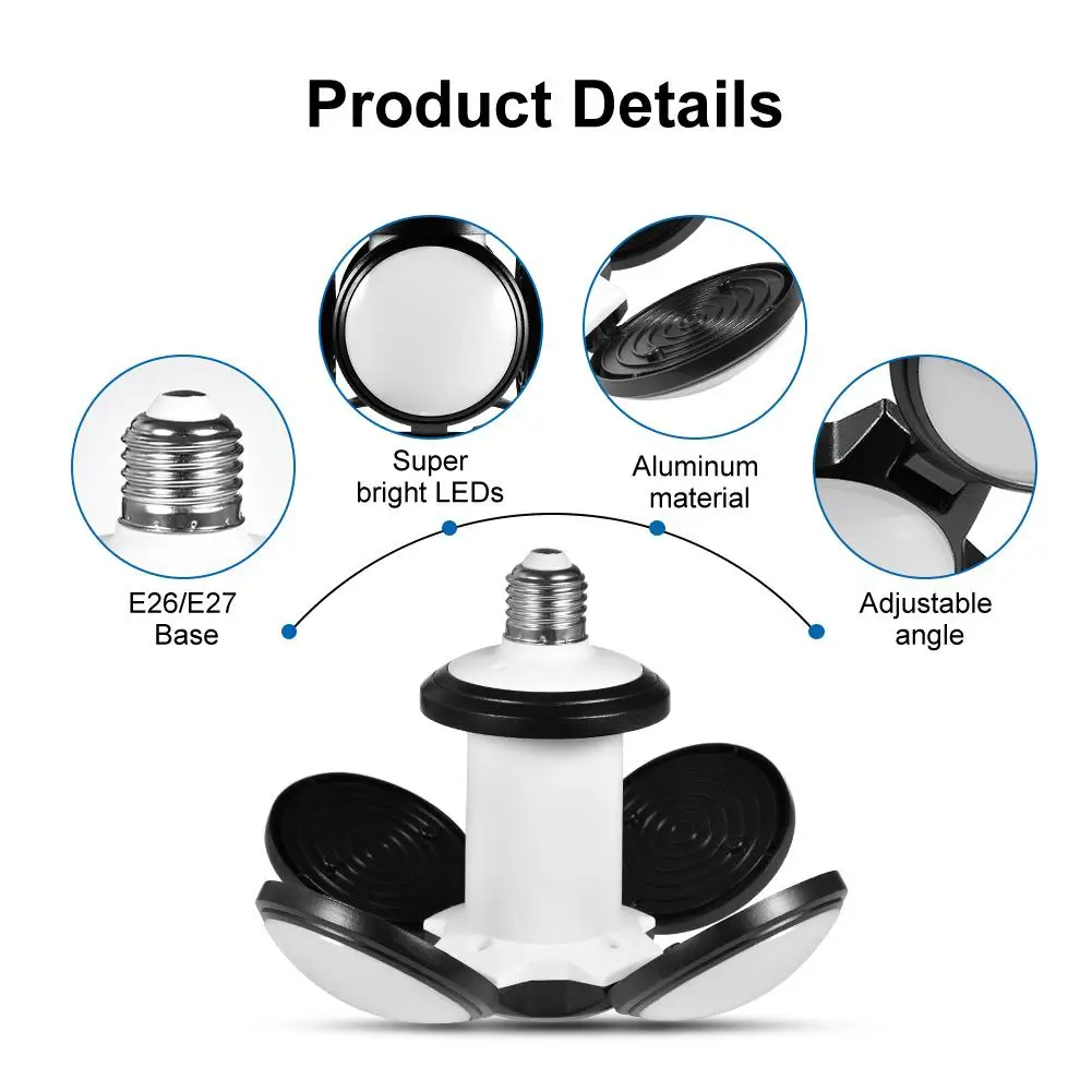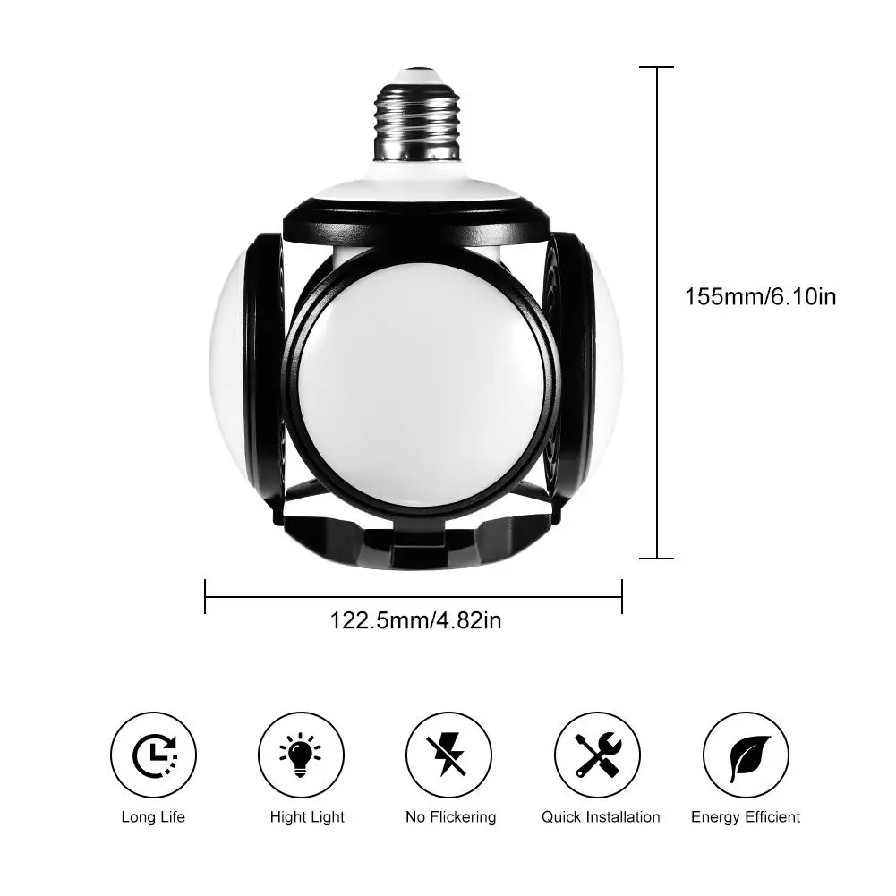 60 Вт деформируемый светодиодный светильник для гаража складной светодиодный потолочный светильник с 4 регулируемыми панелями для гостиной подвала