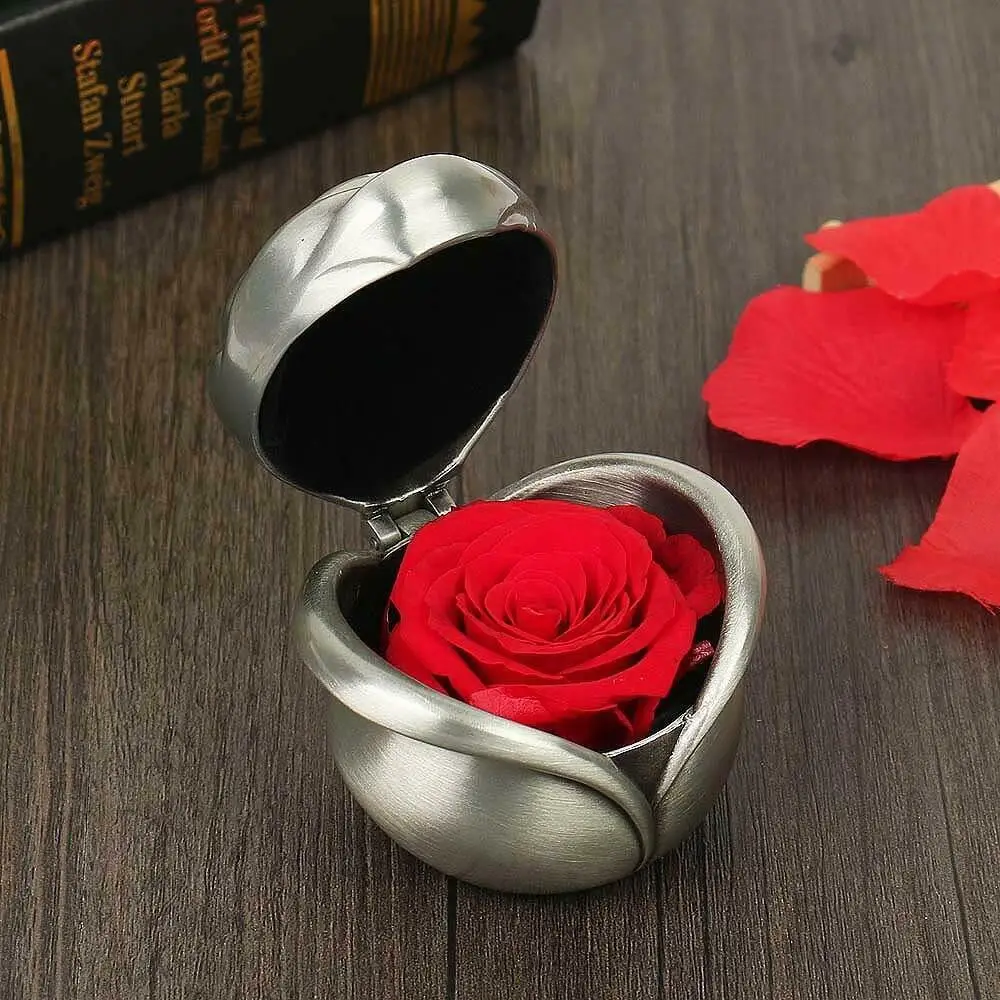 1 xСохраненный свежий цветок в коробке с подарочным чехол
