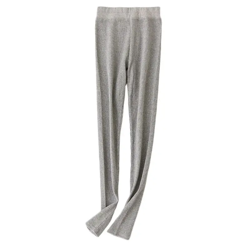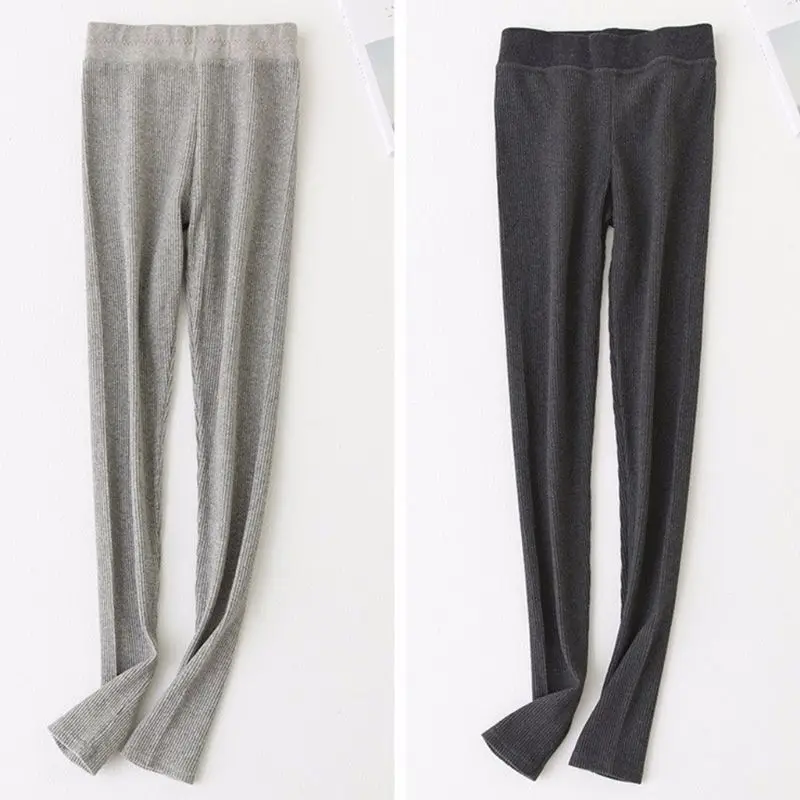 Высокая талия, широкий эластичный пояс, однотонный, длина по щиколотку, вязаный в рубчик, узкий дизайн в Вертикальную Полоску.