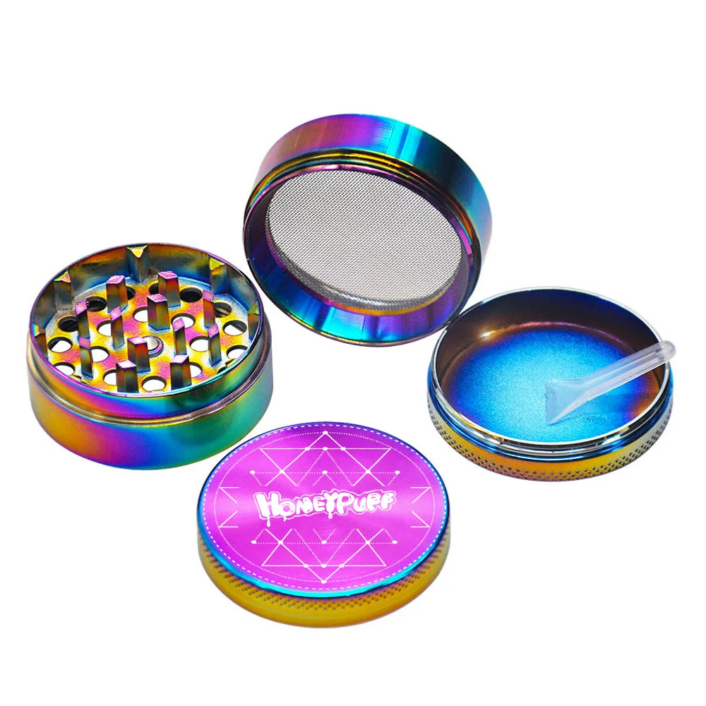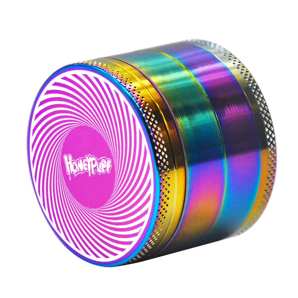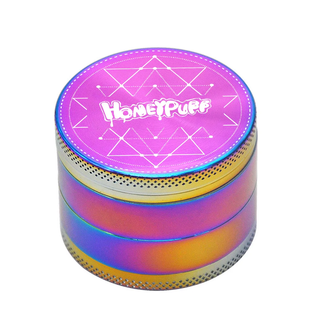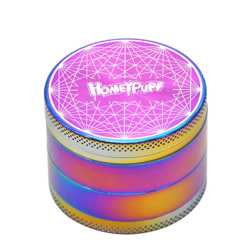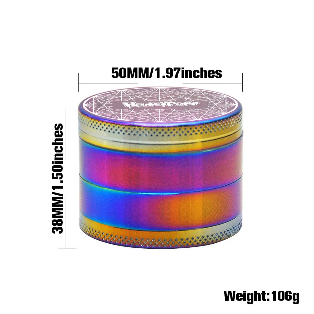 HONEYPUFF цинковый сплав Радуга металл курительная травяная мельница Материал: высококачественный цинковый сплав Диаметр: 50 мм/1,97 дюйма Высота: 38 мм/1,50 дюйма Вес: 106 г/шт. Цвет: Упаковка бумажной коробки(Как на фото) Зубы: острые алмазные зубы Часть: 4 шт. Использование: для резки табака Особенности: Посылка включает в себя: 1 х HONEYPUFF цинковый сплав Радуга металл курительная травяная мельница