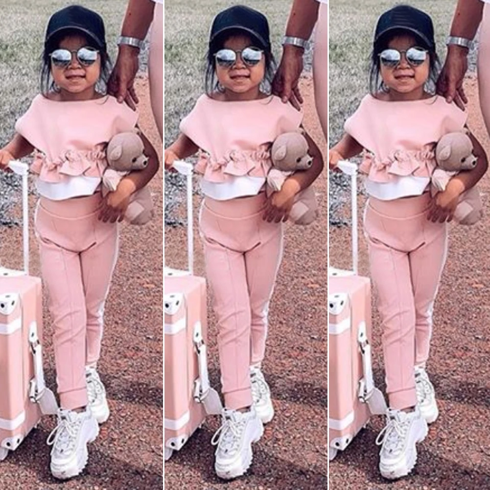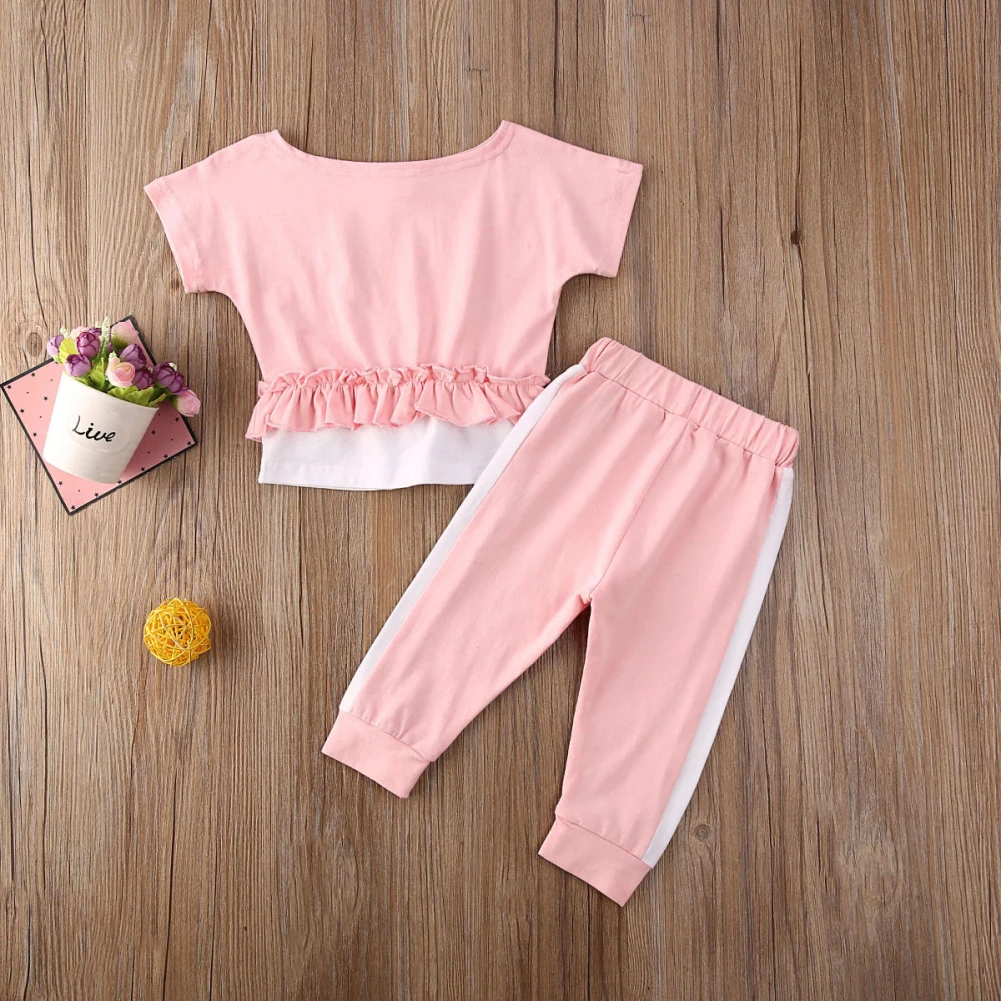 Основной цвет: розовый Размеры: 1-7Years Материал: хлопковая смесь В комплект входит: наряды из двух предметовРазмеры таблицей: