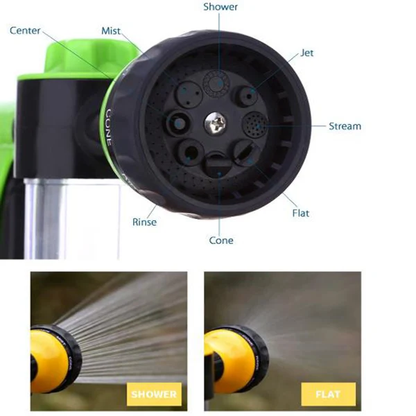 Категория: Автомойка Высокого Давления Пены Водяной пистолет Цвет: желтый/зеленый (переменный) Материал: пластик Размер водяного пистолета: длина 20 см, высота 14,6 см Емкость поролона: 100 мл Переключатель потока: скорость потока увеличивается стрелкой, делится на малый объем/средний объем/большое количество Классификация спринклеров: туманная, коническая, толстая колонна, скошенная, плоская, многоточечная линейная, тонкая колонна, для купания Добавить жидкость для автомойки (порошок для автомойки): 1. Удалите Пенную трубку вращением по часовой стрелке; 2. Добавьте жидкость для мытья автомобиля/порошок; 3. Выровняйте винт и затяните его против часовой стрелки; 4. Откройте переключатель для использования
