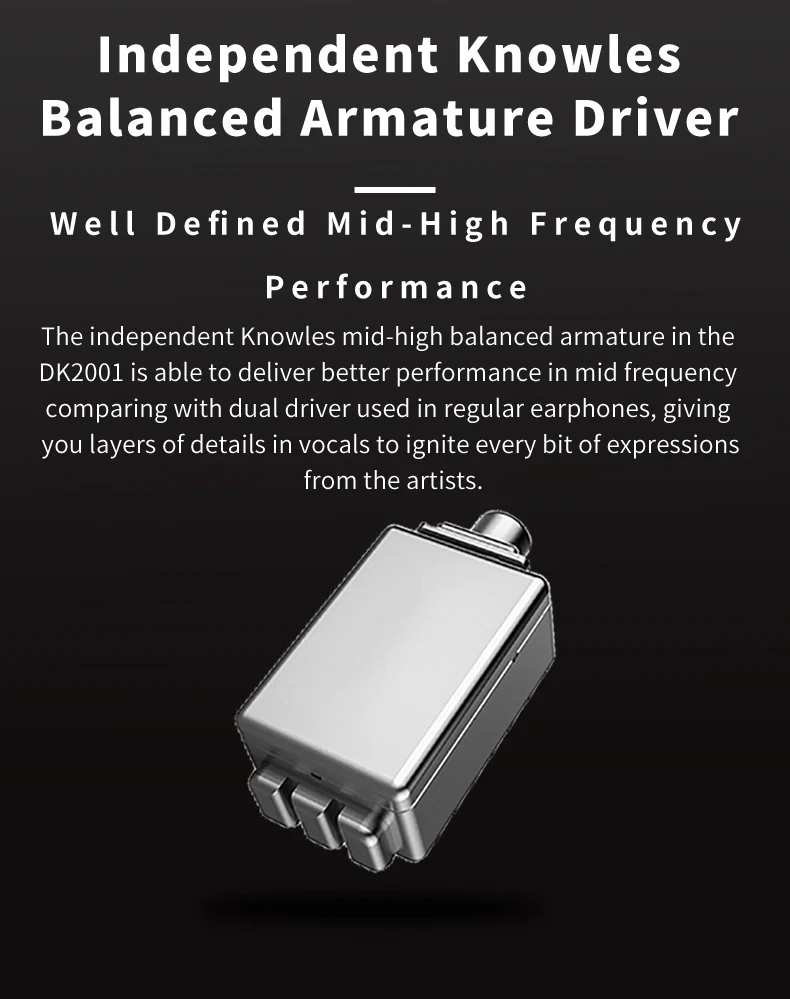 Характеристики: Модель: DK2001 Драйвер: 1DD + 3BA Динамический драйвер: 13 мм Бериллиевая диафрагма Динамический драйвер Сбалансированный арматурный драйвер: Knowles Custom High-Mid * 1,Knowles Custom Ultra-High * 2 Кабель: высокочистый посеребренный медный литровый провод OCC Кабель Длина: 1,2 м Сопротивление: 13 Ом Вес нетто: 14 г Разъем: Catch-Hold MMCX коннектор Чувствительность: 109дб +- 2 при 1 кГц Частотная характеристика: 5 Гц-40 кГц THD: <0.5% при 1 кГцОчень эффектные босоножки, почти как у моей любимой певицы Леди Гаги. Взяла сразу два варианта, с сердечками и с цветочками.... Читать отзыв полностью...
