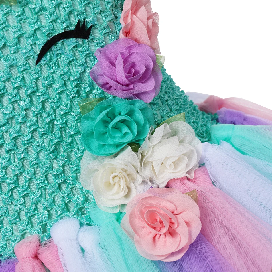 Наименование: платье с единорогом для девочек; Милое бальное платье с героями мультфильмов; Нарядные платья принцессы; Радужные цветы; Vestido Infantil; Детские костюмы без рукавов