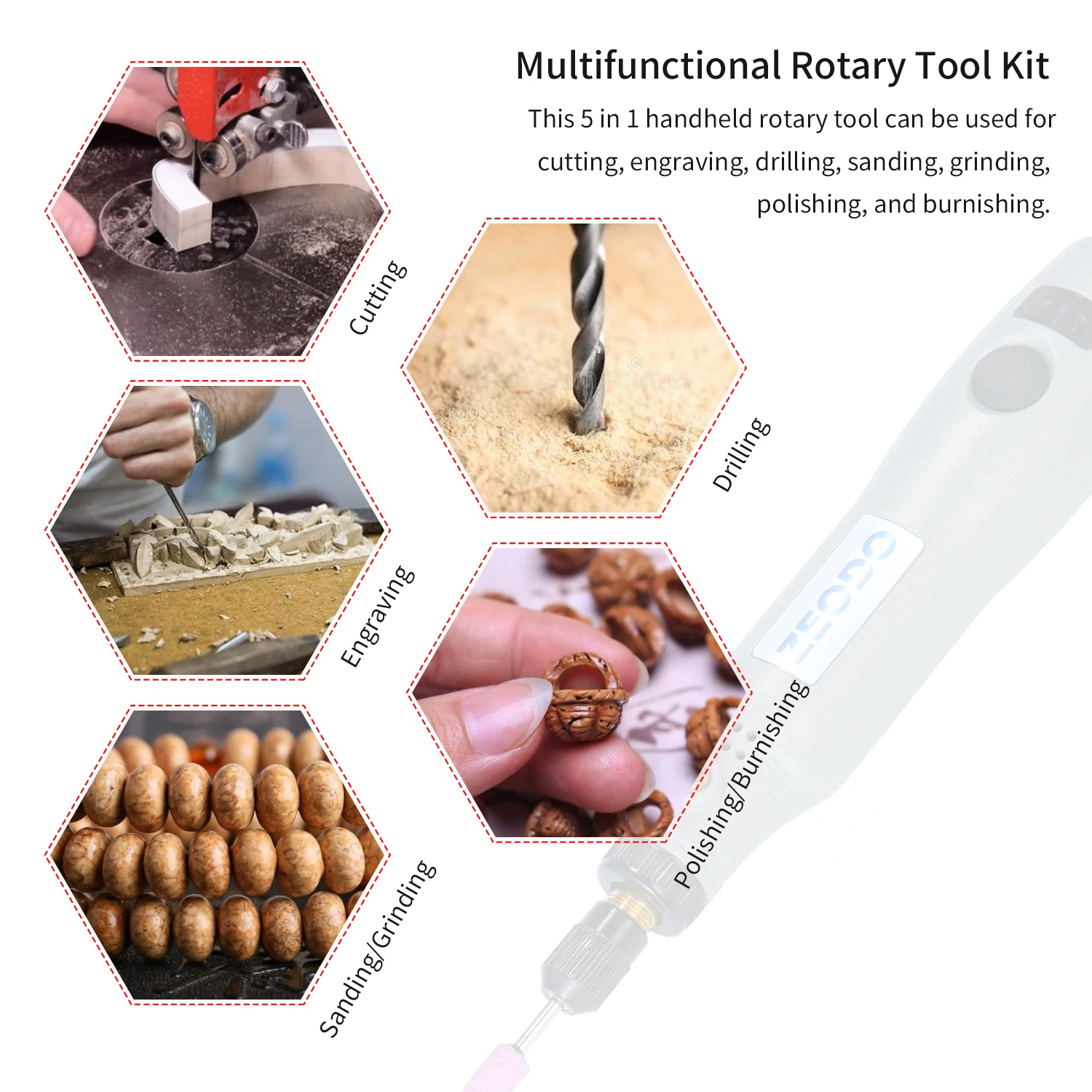 [Многофункциональный]Этот ручной поворотный инструмент 5 в 1 используется для резки, гравировки, резьбы, сверления, шлифовки, шлифования, полировки, полировки и полировки.