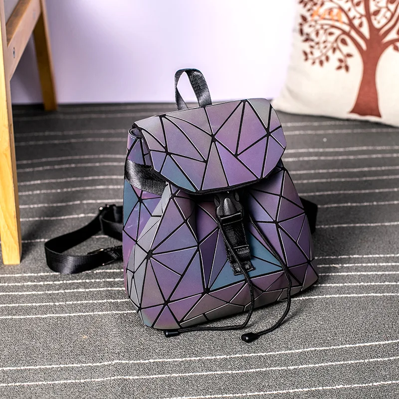 Геометрический светоотражающиеМаленькийЖенский рюкзак в Корейском стиле, женские рюкзаки с пайетками для девочек-подростков, сумка на шнурке