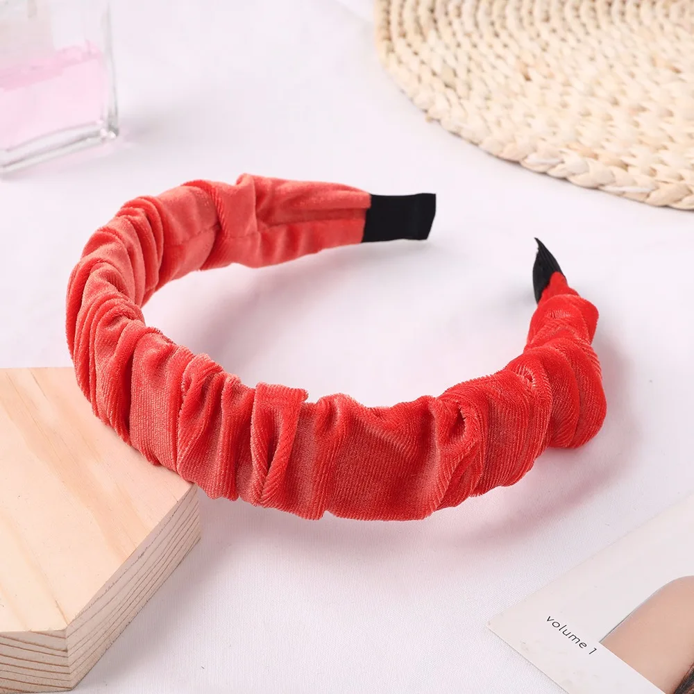 Бархатная широкая повязка на голову, зимняя женская плиссированная волнистая лента для волос, яркие цвета, мягкие элегантные аксессуары для волос