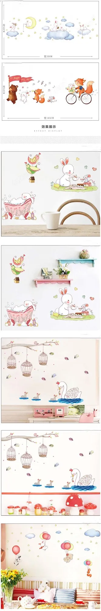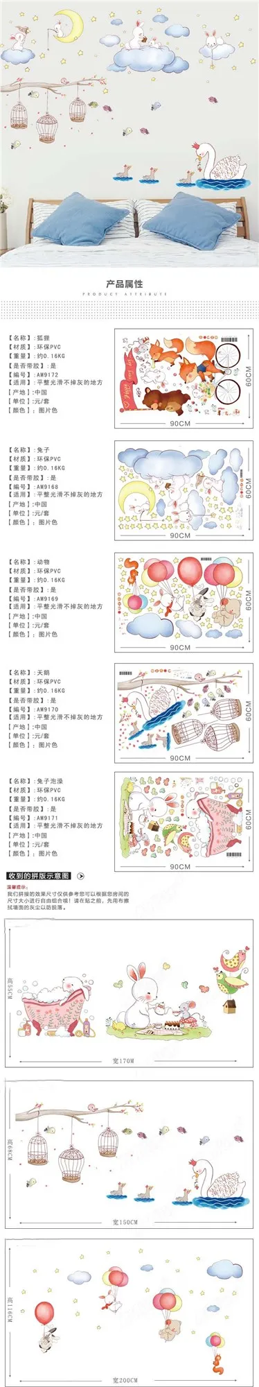 3D наклейки на стену для дома с мультяшным облаком, Кроликом, луной, для детской комнаты, для девочек, принцессы, для украшения спальни, для детского сада, наклейки на стену