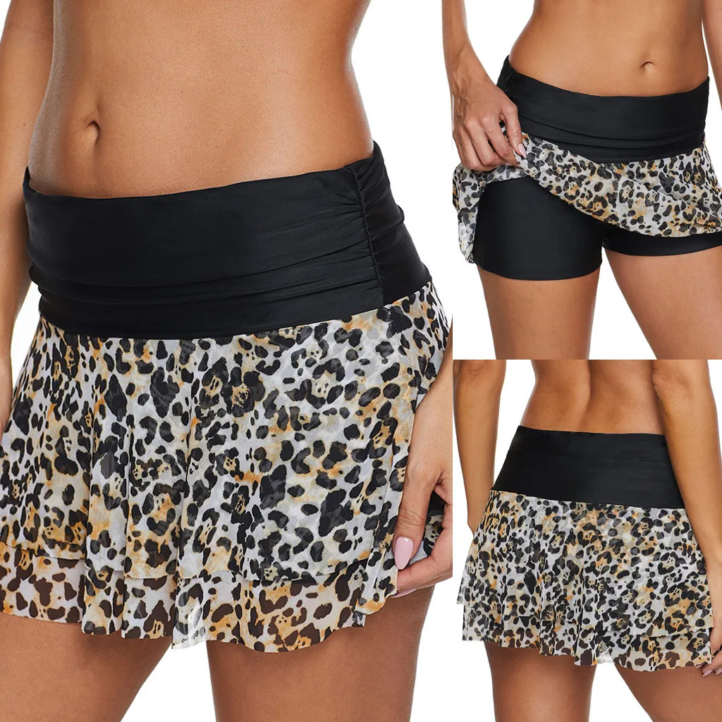 Женские леопардовые шорты с рюшами и высокой талией, пляжные Лоскутные шорты больших размеров для плавания