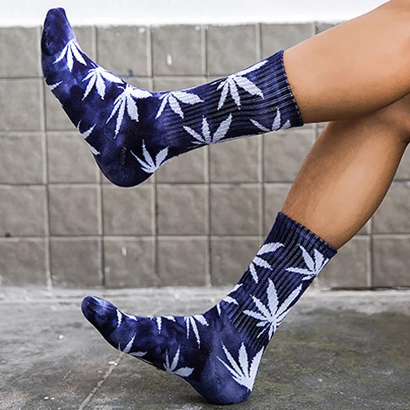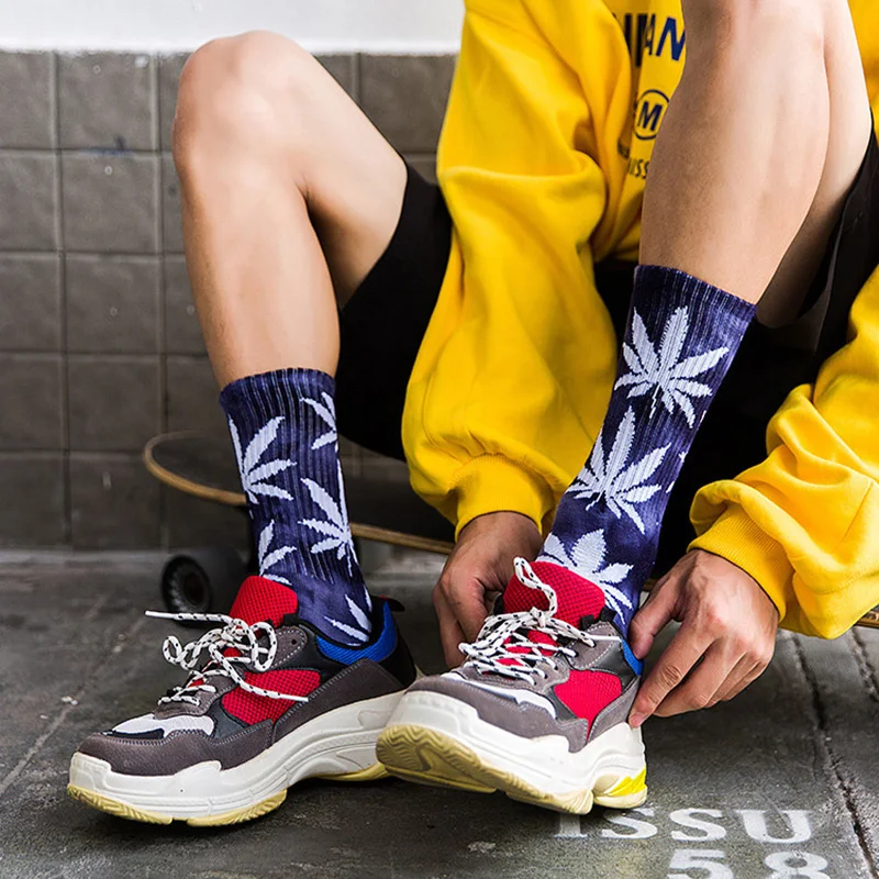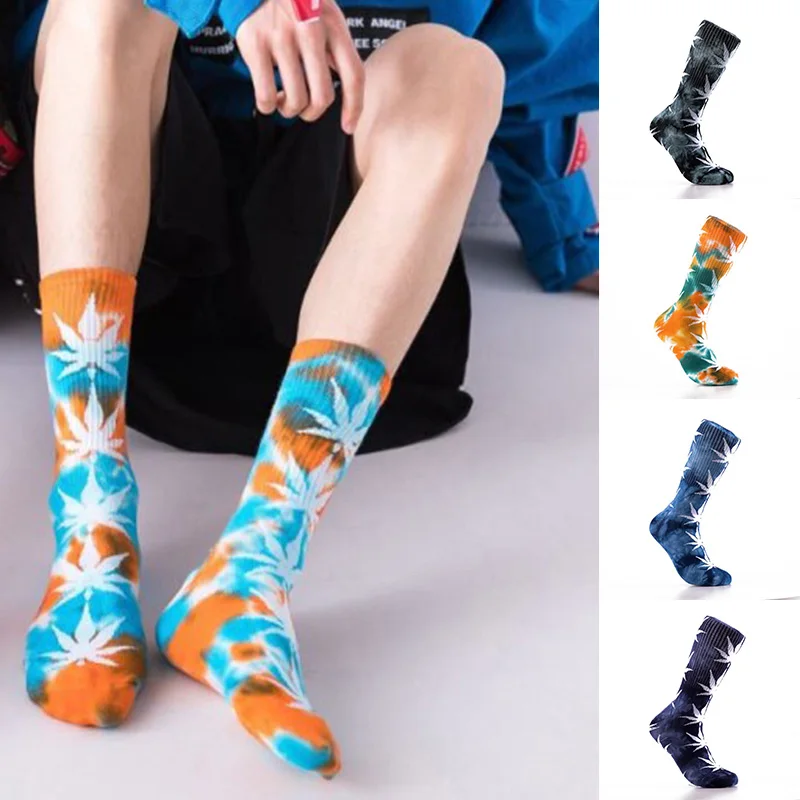 Галстук-окрашенные кленовые носки с листьями, длинные модные носки-сорняки, мужские носки для скейтборда, носки для хипхопа
