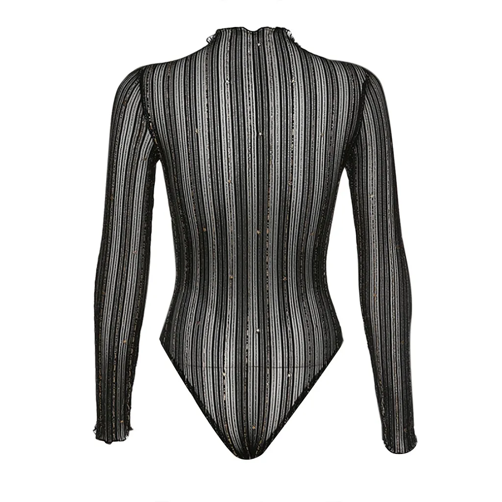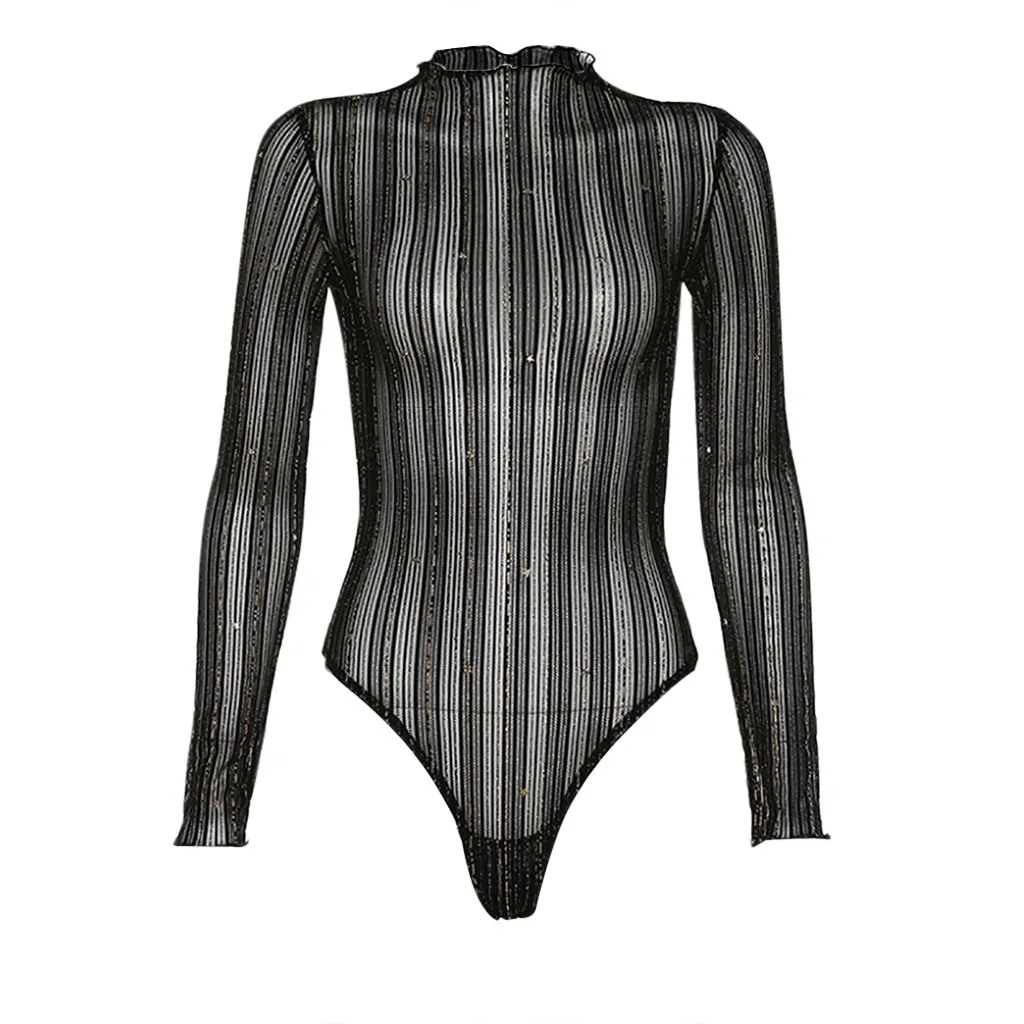 Spring Women Bodysuits Fashion Solid Perspective Long Sleeve Turtleneck Slim Fit Jumpsuit Bodis de Mujer 2020 New Drop Shipping E