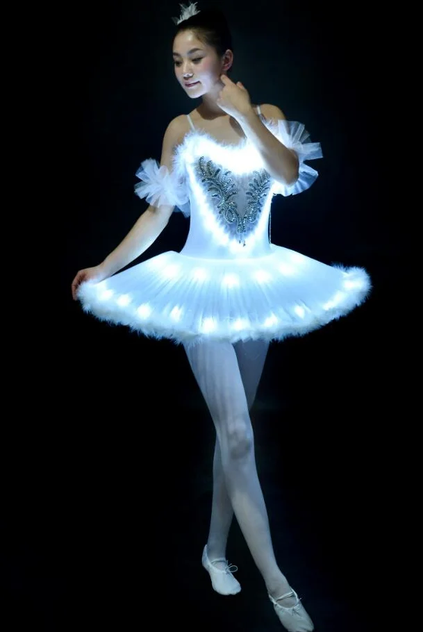 Профессиональная балетная пачка, светодиодный, Лебединое озеро, для взрослых, одежда для балета, юбка-пачка, для женщин, платье для балерины, вечерние, танцевальный костюм