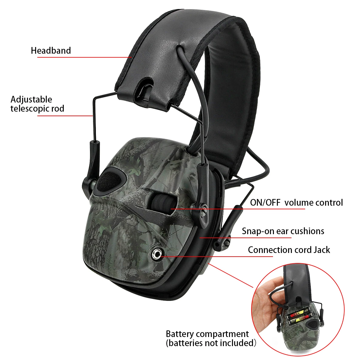 Удобная и регулируемая повязка на голову. Шумоподавление, защита вашего слуха. Это позволяет Вам слышать важные команды на расстоянии и критических звуках окружающей среды при охоте.