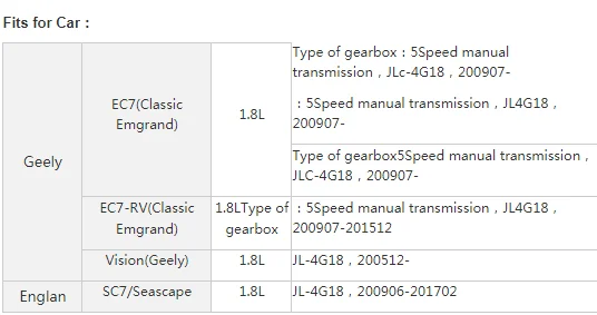 GEELY Видение 1,8 2006-2012 JL4G18 1792cc 102kw седан GLEAGLE (GEELY) Видение 1,8 2007-2011 JL4G18 1792cc 102kw седан Видение 1,8 2012-2013 JLY-4G18 1808cc 98kw седан