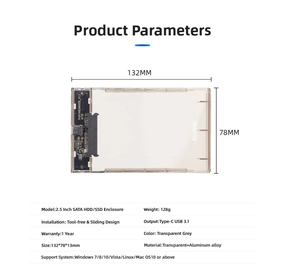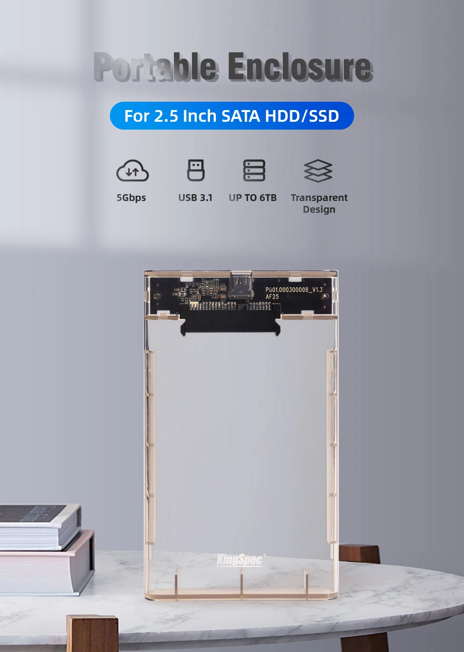 Kingspec SSD чехол 2,5 SATA к USB 3,0 адаптер жесткий диск Корпус для SSD диск коробка Тип C 3,1 чехол HD внешний HDD корпус
