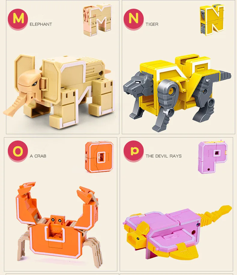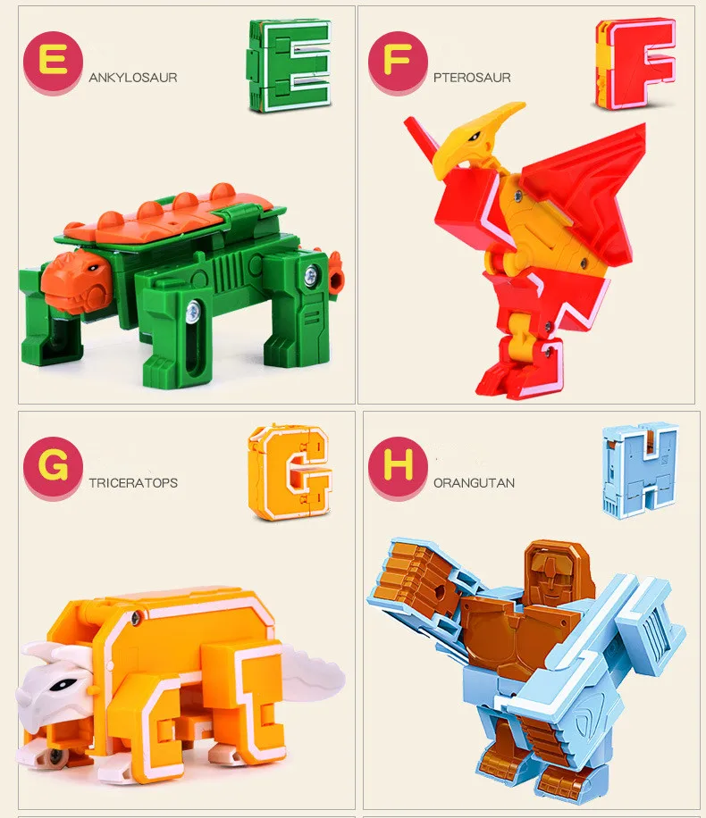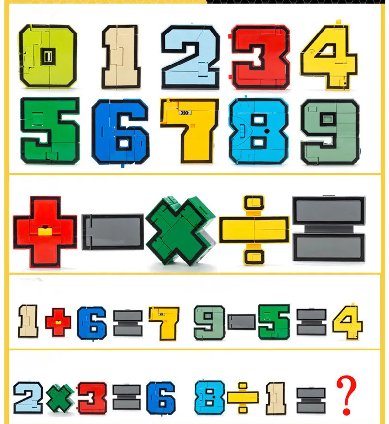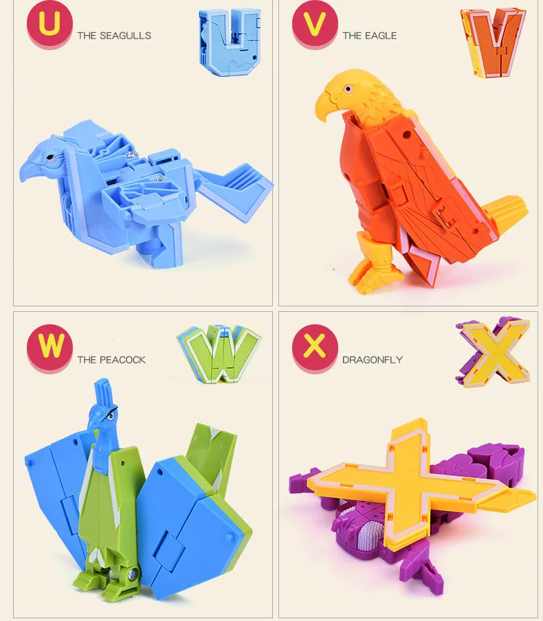 Спецификация: 1. Материал: экологический АБС-пластик 2. Упаковка: оригинальная подарочная коробка 3. Стили на выбор: Пожалуйста, обратите внимание на фотографии Характеристика: 1. Оригинальные буквы могут быть объединены, чтобы стать разными словами, так что дети могут выучить английский язык в процессе игры. И цифры и математические символы могут привести детей к изучению математики. Это может стимулировать интерес детей к изучению. 2. Для этой игрушки есть богатые цвета. Это хорошо, чтобы улучшить цветовое познание маленьких детей. 3. Все буквы и цифры могут трансформироваться в различные узоры соответственно (например, животные, танк, маленький робот, вертолет и т. Д.). И все они также могут быть объединены, чтобы стать 1 или 2 большими роботами. Это очень интересно и креативно.