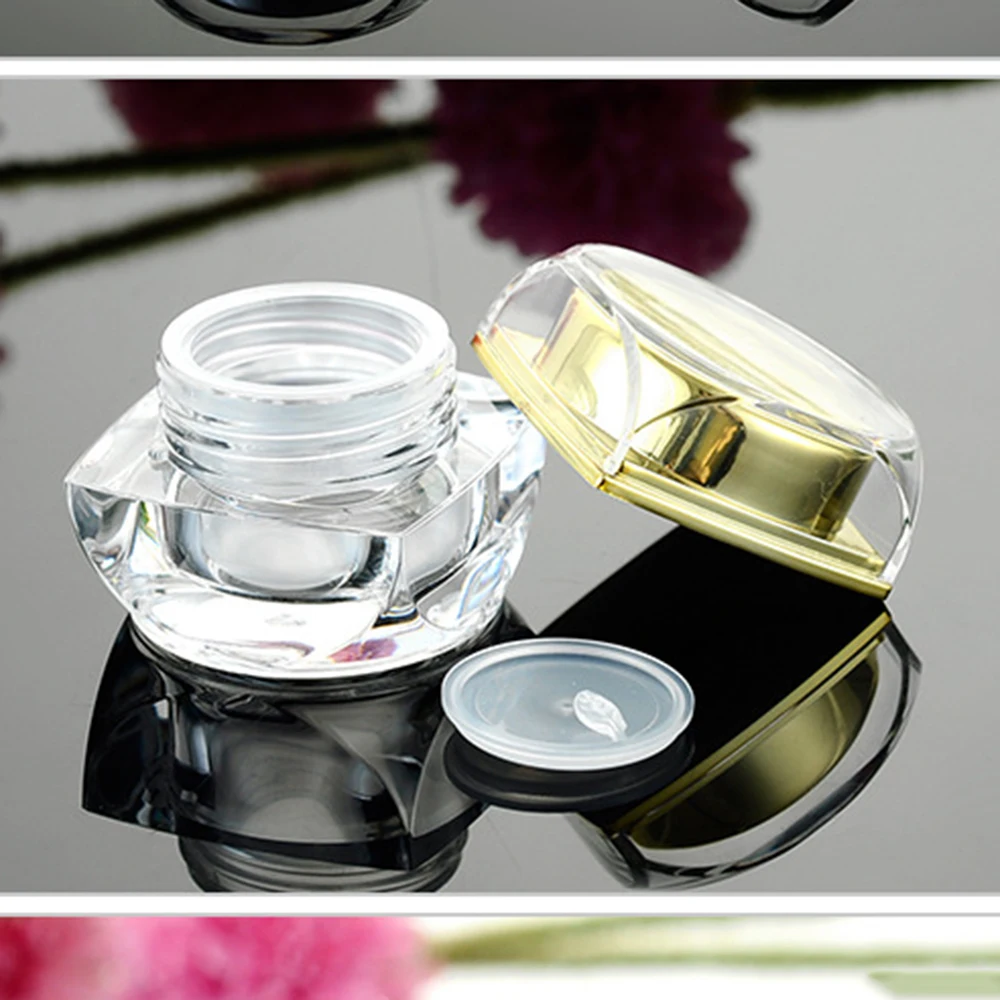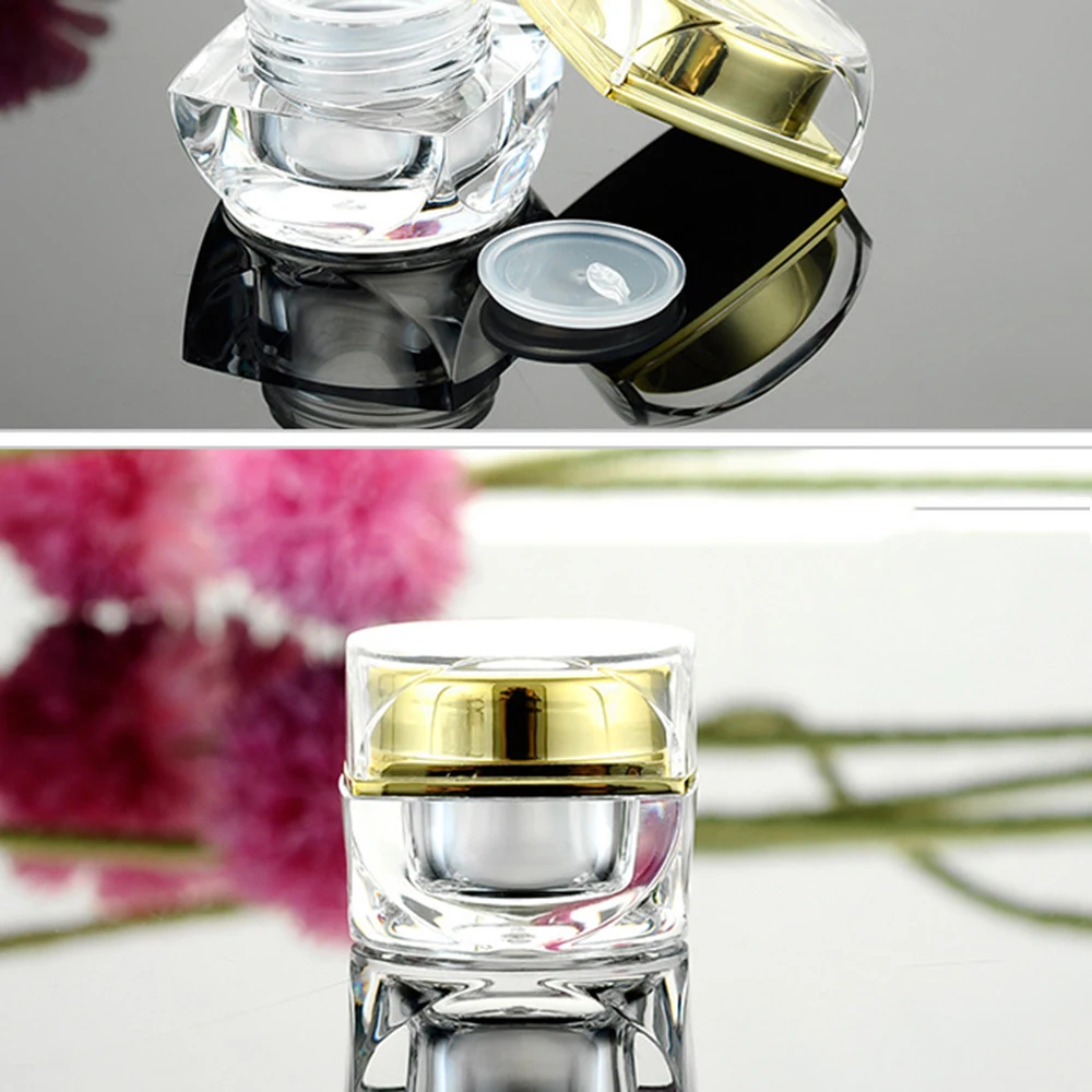 100% новый и высокое качество Максимальная емкость: 10 г/5G Материал: пластик Размеры: A: 2,2 см * 3 см B: 4,3 см * 3,3 см/1,69*1,3 (приблизительно) Цвет: прозрачный/Золотой/Серебряный Количество: 1 шт.