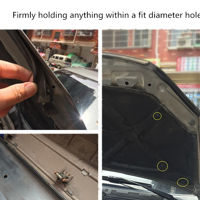 Они используются для обрезки зажимов панели, зажимы-пистоны для закрепления дверной обивки, дверные панели зажимов, бампер зажимы, зажимы автомобильного крыла, крышка двигателя и брызг щит фиксаторы замены. Также покрывает другие приложения, такие как мотоцикл, мебель и бытовая техника. Эти зажимы подходят для надежного удержания чего-либо в отверстии подходящего диаметра.