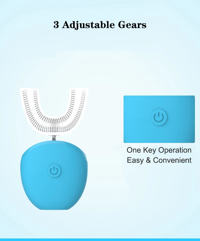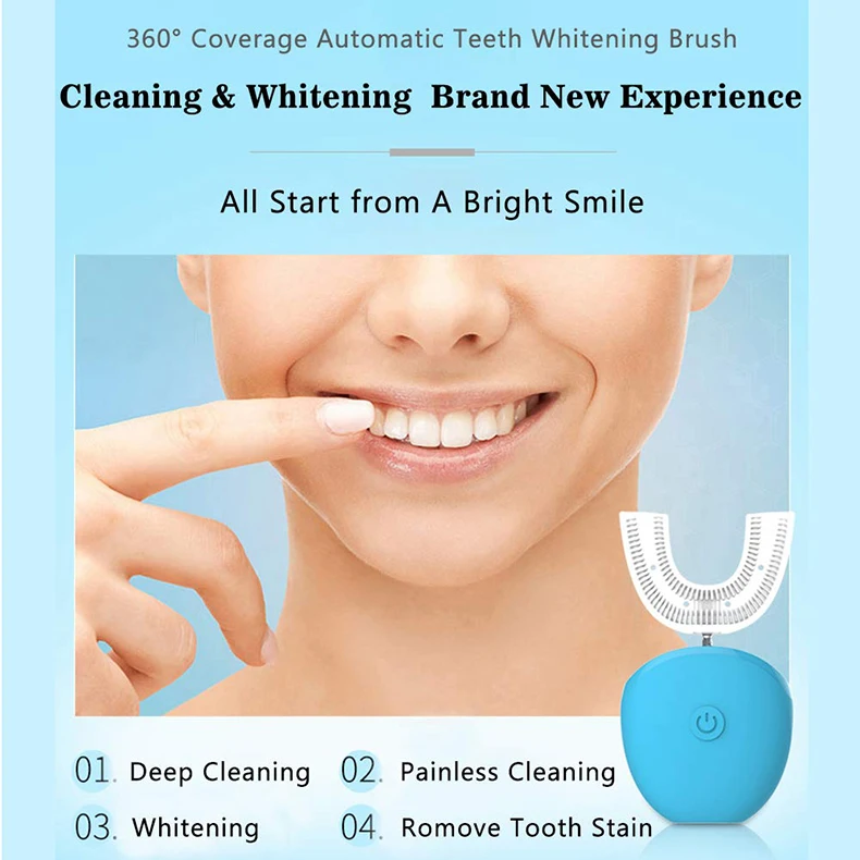 360 градусов автоматическая электронная зубная щетка USB перезаряжаемая звуковая электрическая зубная щетка синий светильник отбеливающий Водонепроницаемый 4 режима Продукт химического состава:1. Звуковая вибрационная очистка, завершение сквозной очистки в течение 35 секунд.2. U-образная силиконовая головка щетки, 360 ° покрывает зубы, предлагает быструю и полную очистку.3. Холодный синий светильник отбеливает зубы, подавляет бактерии, защищает здоровье зубов.4. Четыре режима работы, нежный (35s), сильный (35s), отбеливание (10 минут), массаж (35s). Удовлетворить ваши различные потребности.5. Беспроводная Индуктивная зарядка, быстрая зарядка, срок службы батареи 30 дней.6.IPX7 водонепроницаемый, мыть его сразу после чистки, безопасно и удобно.