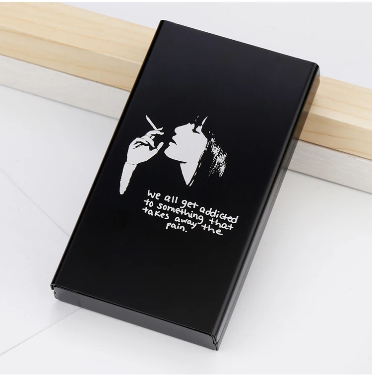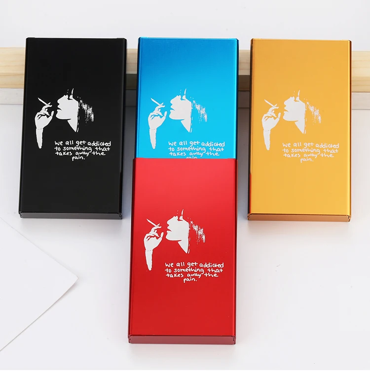Название продукта: тонкая сигарета коробка Фирменное наименование: производные странности Материал: алюминиевый сплав Вес: 31 г Цвет: красный/черный/синий/золотой Размер: 106 мм/длина, 60 мм/ширина, 16 мм/высота Технология обработки: лазерная маркировка Узор: Креативный дизайн Посылка ходит: коробка для сигарет х 1 шт. (Сигареты в комплект не входят)