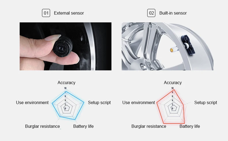 Характеристики Датчика:• Рабочая частота: 433,92 МГцРабочая температура: -20 °C -50 °C• Влажность: от 0% до 100%• Срок службы батареи: внешний датчик> 2 года/30000 км• Рабочее давление: 0 - 99psi• Давление сигнализации:> 46,5 фунтов на квадратный дюйм или <26,0 фунтов на квадратный дюйм• Точность давления: ± 1,5 psi• Рабочее напряжение: 2,1-3,6 В• Водонепроницаемость: Ip67