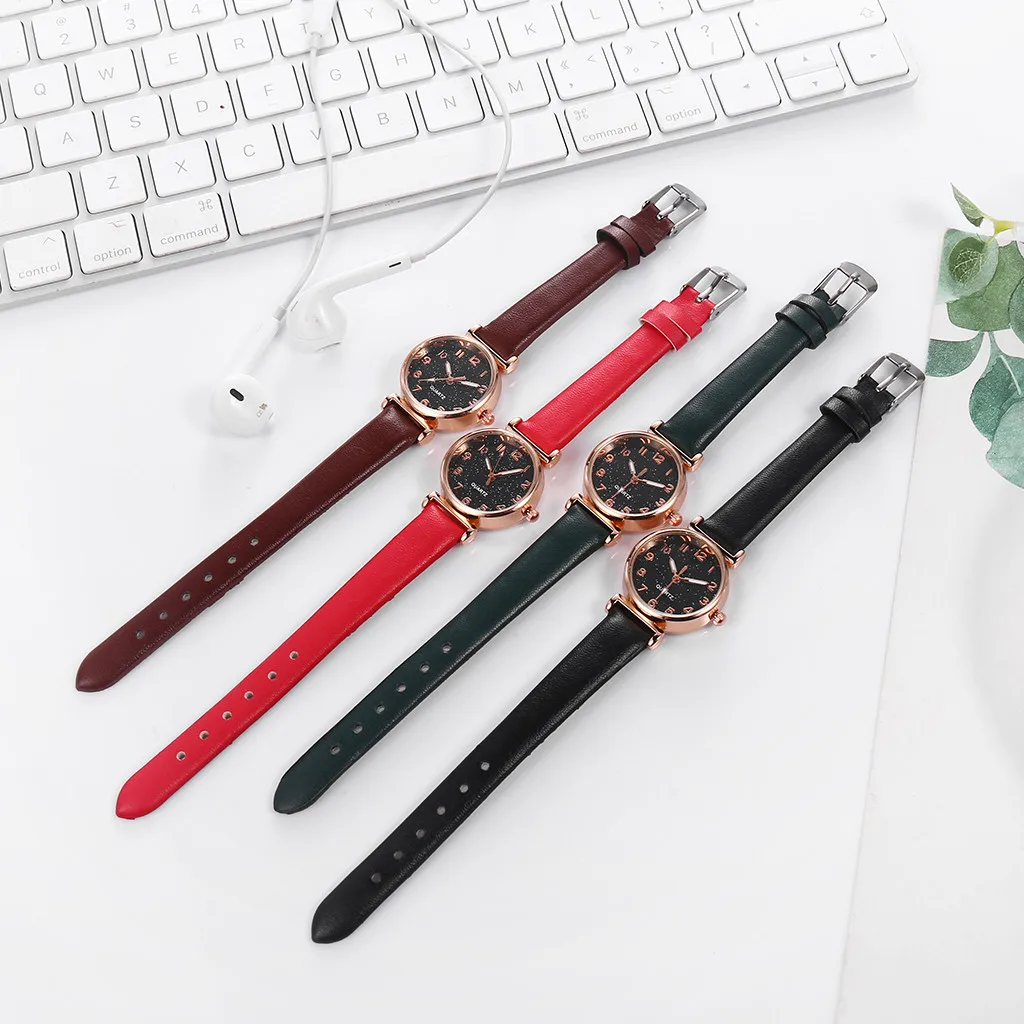 Стильные изысканные минималистичные цифровые Звездные часы с ремешком, женские кварцевые часы, подарок Выбранная кожа, прочная, без шелушения, не выцветает Простой цифровой циферблат, роскошный и практичный, позволит вам наслаждаться Ремешок разноцветный, удобный в носке и очень декоративный. Подходит для любого случая Минималистский дизайнОсобенности: