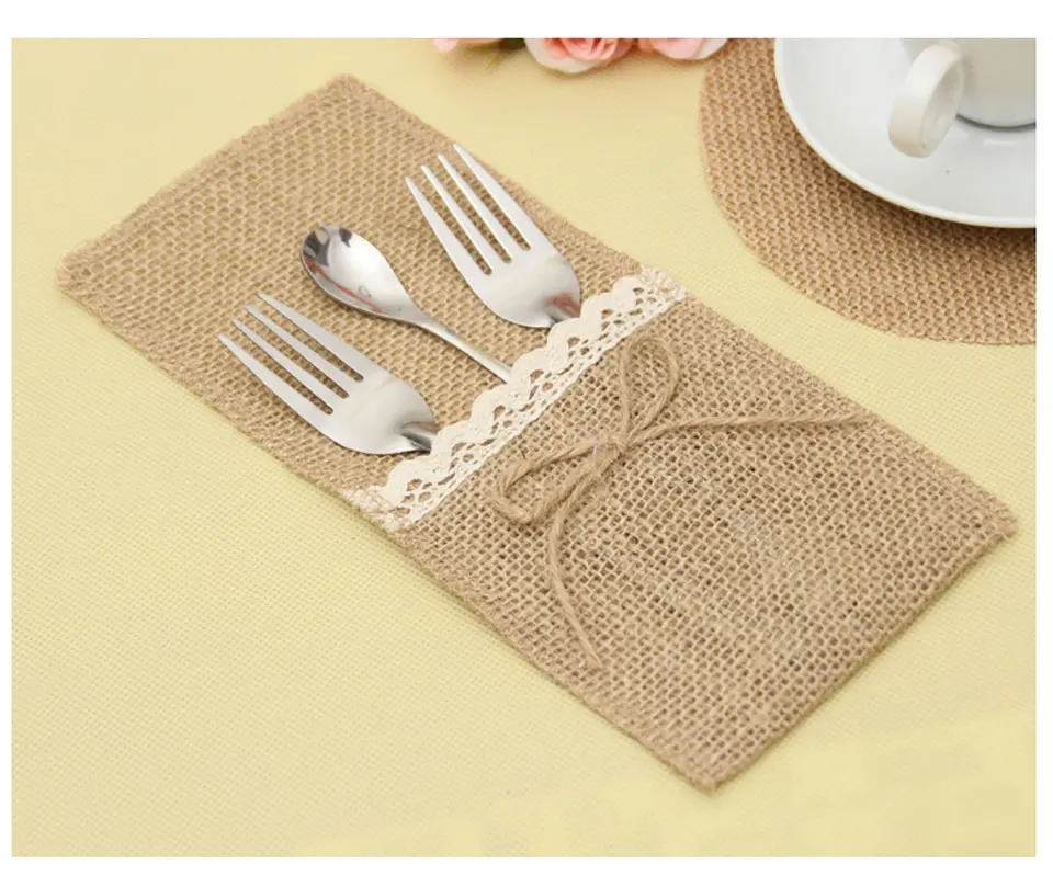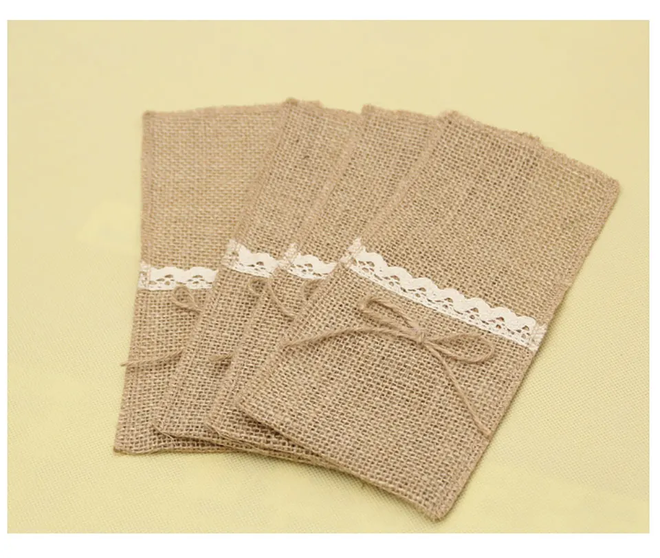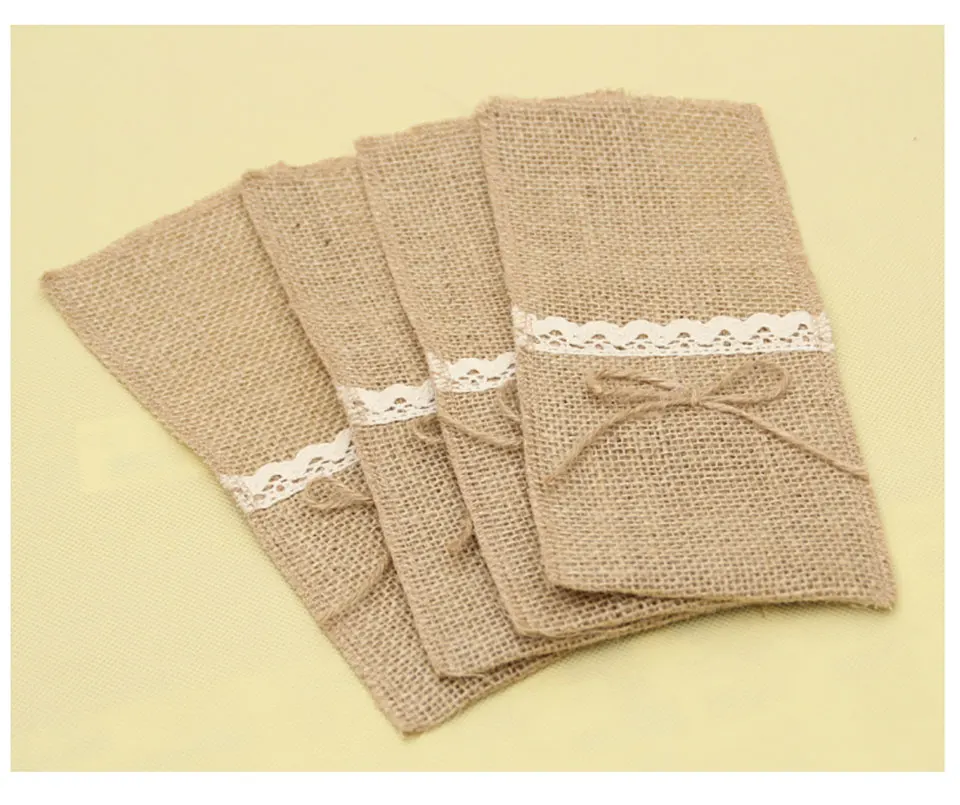 Льняные кружевные мешочек для столовых приборов из мешковины, свадебные столовые приборы в деревенском стиле, ножи, чехол для вилок, джутовые столовые приборы, аксессуары для украшения стола 100% новый бренд и высокое качество