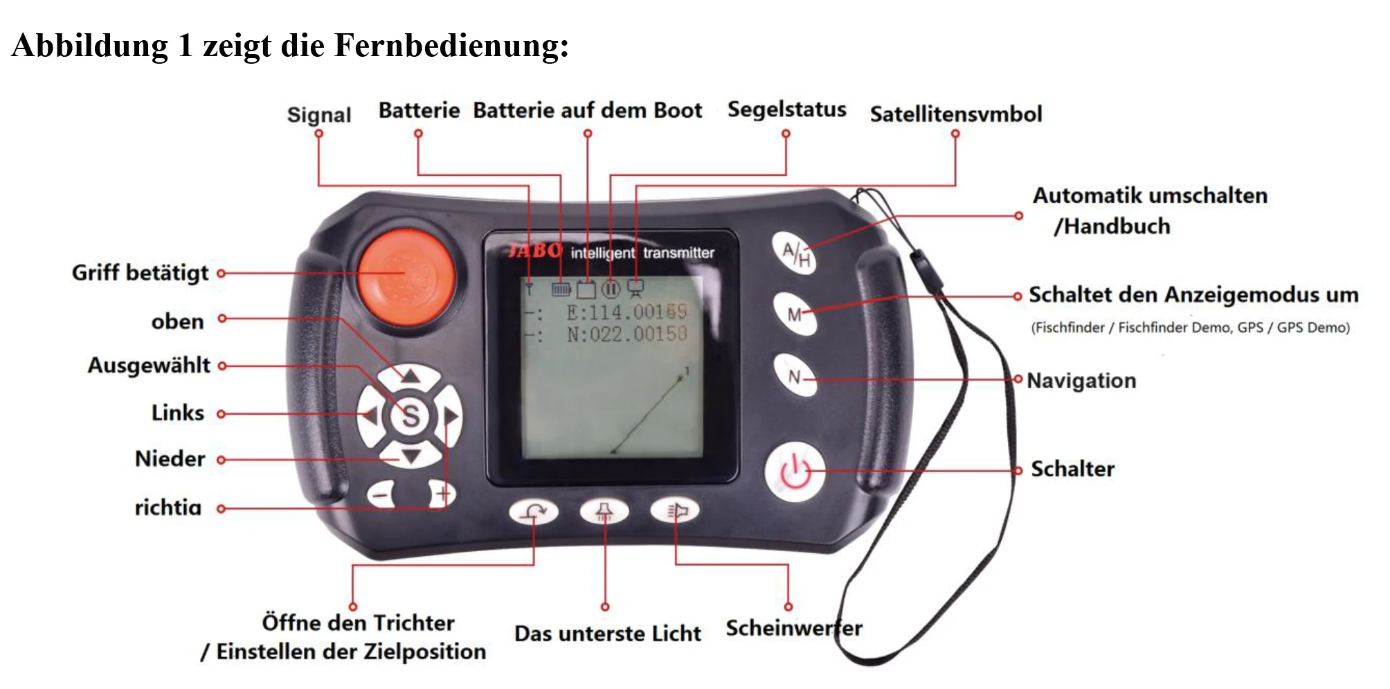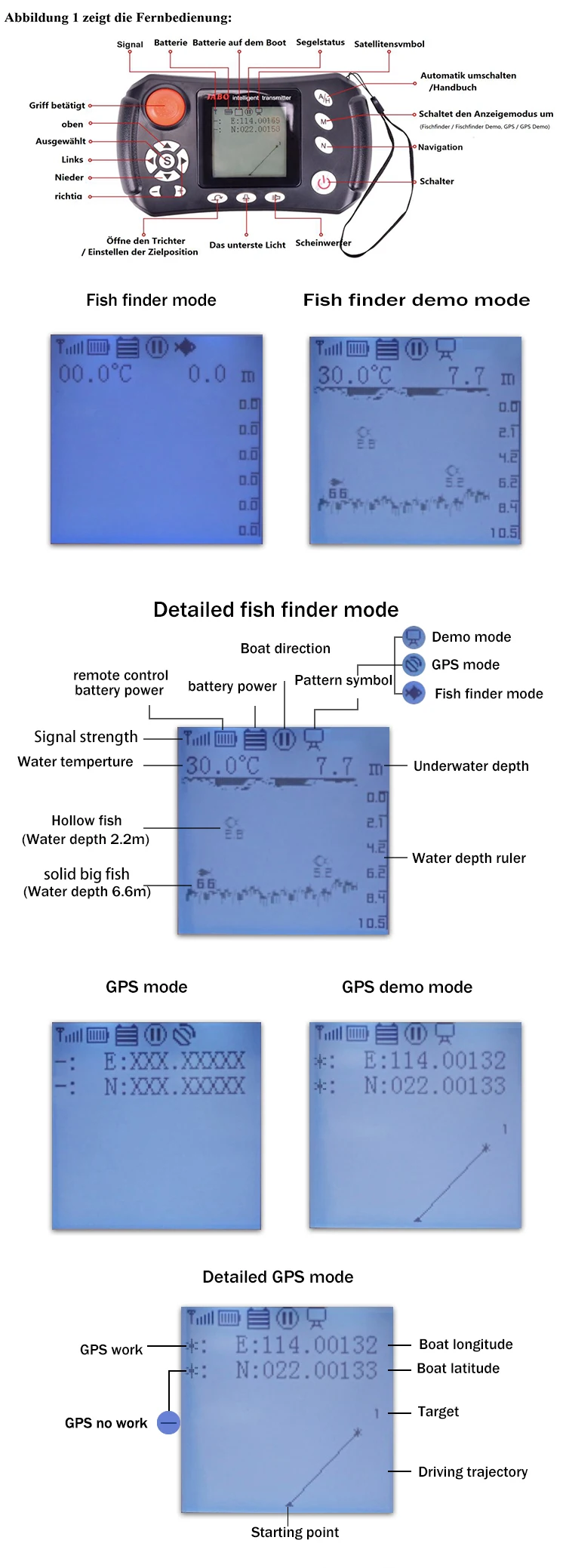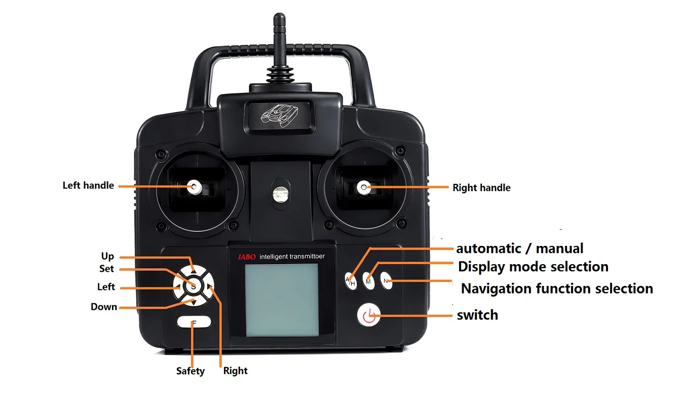 Китайское имя: JABO5AG Автоматическая навигация крушение корабль, в том числе: крушение корабль * 1, дистанционный пульт * 1 батарея 6.4V10A * 2, 7,5 V зарядное устройство * Руководство пользователя на английском языке (1 шт.) JABO5AG Автоматическая навигация приманка лодка JABO5AG-это третье поколение интеллектуальных лодок, разработанных и произведенных компанией ZHJABO. Использует GPS позиционирование, электронный компас навигации, может хранить 8 целевых точек наживки, и может автоматически установить начальную точку, Автоматическая навигация до целевой точки, автоматическая подача, автоматическое возвращение к исходной точке автоматически. JABO5AG также имеет функции s Fish finder, Fish lure lamp, измерение температуры воды. Основные функции и особенности лодки JABO 5AG: 1. JABO5CG имеет характеристики точного позиционирования, точность навигации составляет около 2 метров, она может хранить 8 точек целевой приманки. После того, как цель приманки определена в первый раз, Приманка (крючок) может быть помещена снова в том же положении кормовой приманки, шанс больше рыбалки также экономит ресурсы приманки и увеличивает удовольствие от рыбалки. Особенно в чехол для ночной рыбалки, обычные приманки лодки не могут достичь точной кормовой приманки (спуск крючка). Использование JABO 5AG может точно питать приманку (спуск крючка) даже в темные ночи 2.JABO5AG имеет рабочей частотой 2,4g и может быть комплект до 250 частотных точек. Установка нескольких частотных точек позволяет использовать одну и ту же рыбацкую землю несколькими лодками-приманками одновременно без помех. 3. Установите начальную точку вручную (автоматически) каждый раз, когда вы используете его. После установки исходной точки, Корабль приманки может безопасно вернуться в «Дом» после каждого отправления. Если вы не устанавливаете начальную точку вручную, JABO AG также может автоматически устанавливать начальную точку. 4. Выключатель питания включен, лодка-приманка автоматически начнет устанавливать соединение с навигационным спутником. Обычно это занимает 1-3 минуты, чтобы успешно установить соединение 5 JABO5AG имеет два больших ящика для наживки и два устройства для фиксации. Каждый ящик для наживки может нести 2 кг наживки, и два устройства для фиксации могут носить два набора рыболовных крючков. 6 конструкция встроенного пропеллера перекрывает дефект, который внешний пропеллер легко запутывается посторонними предметами и подходит для использования в местах с водными сорняками и плавающими предметами на поверхности воды, А также продлевает срок службы пропеллера.